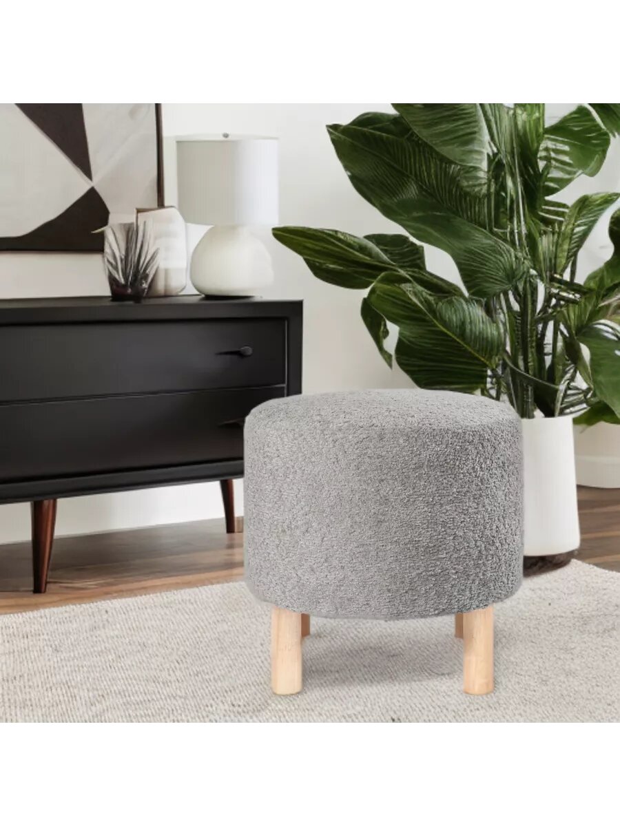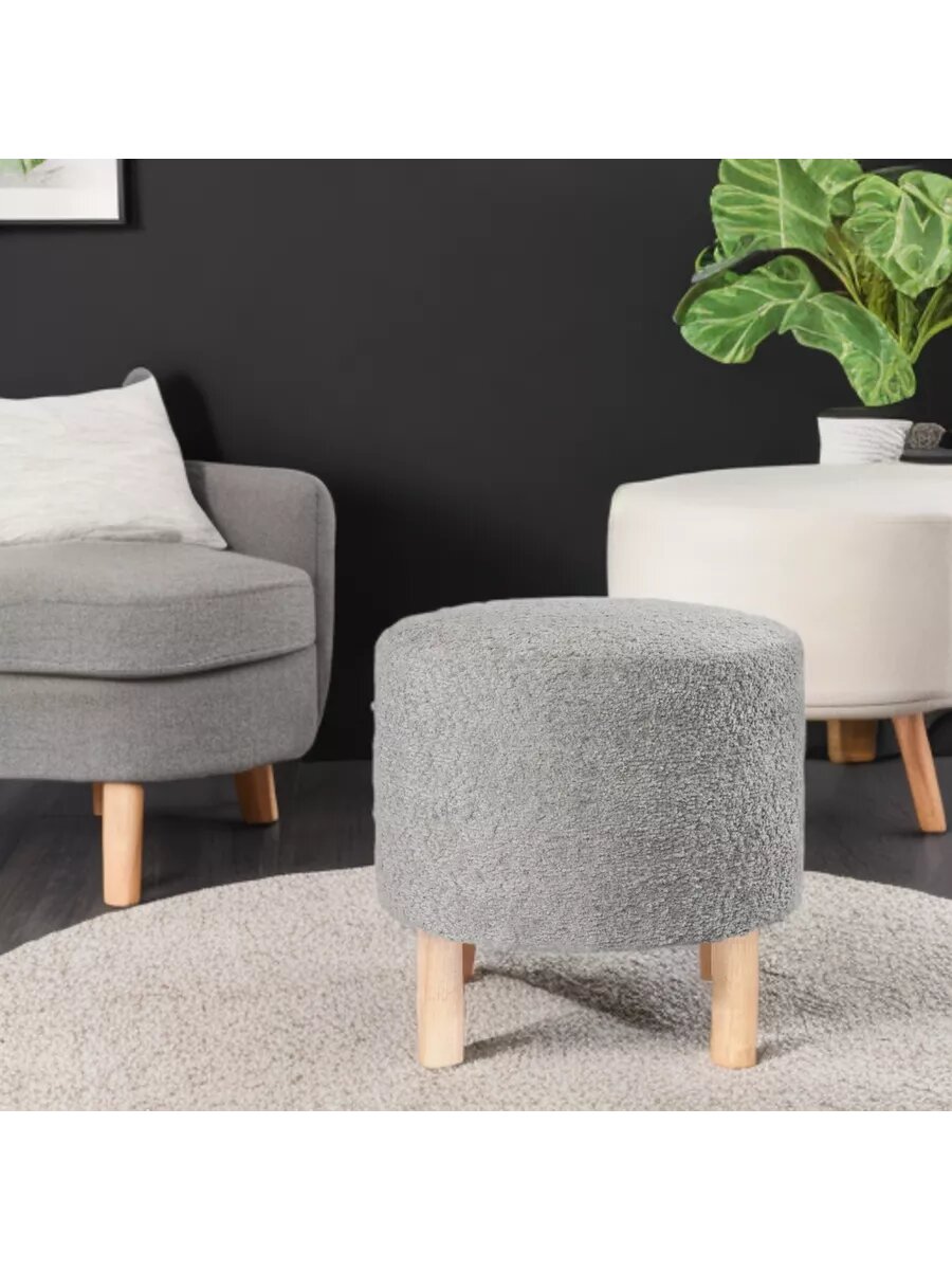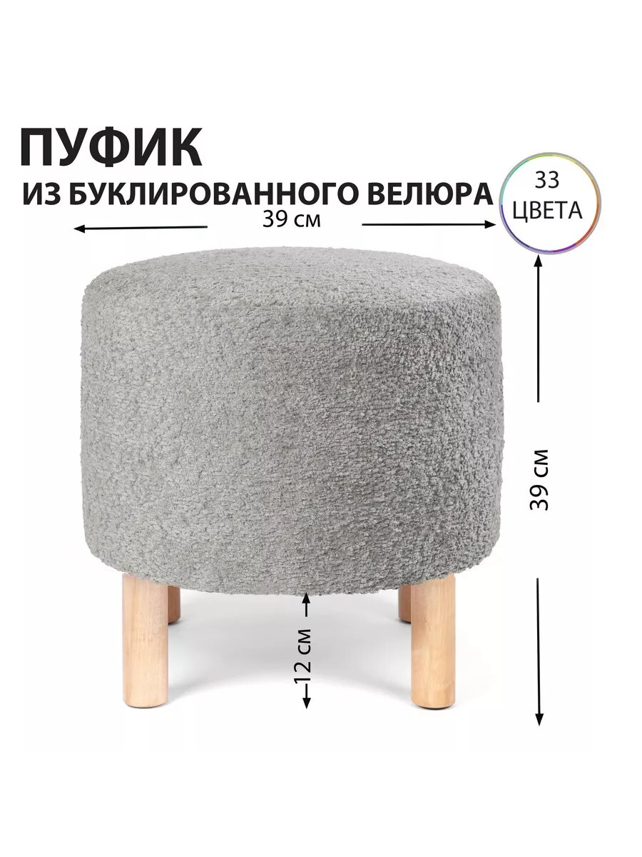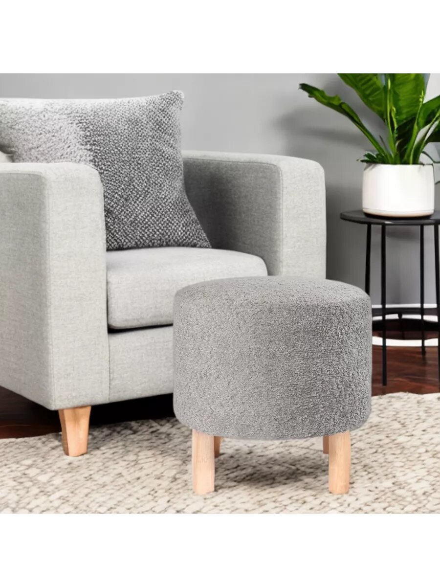 Мягкий Пуфик круглый из велюра Букле на деревянных ножках