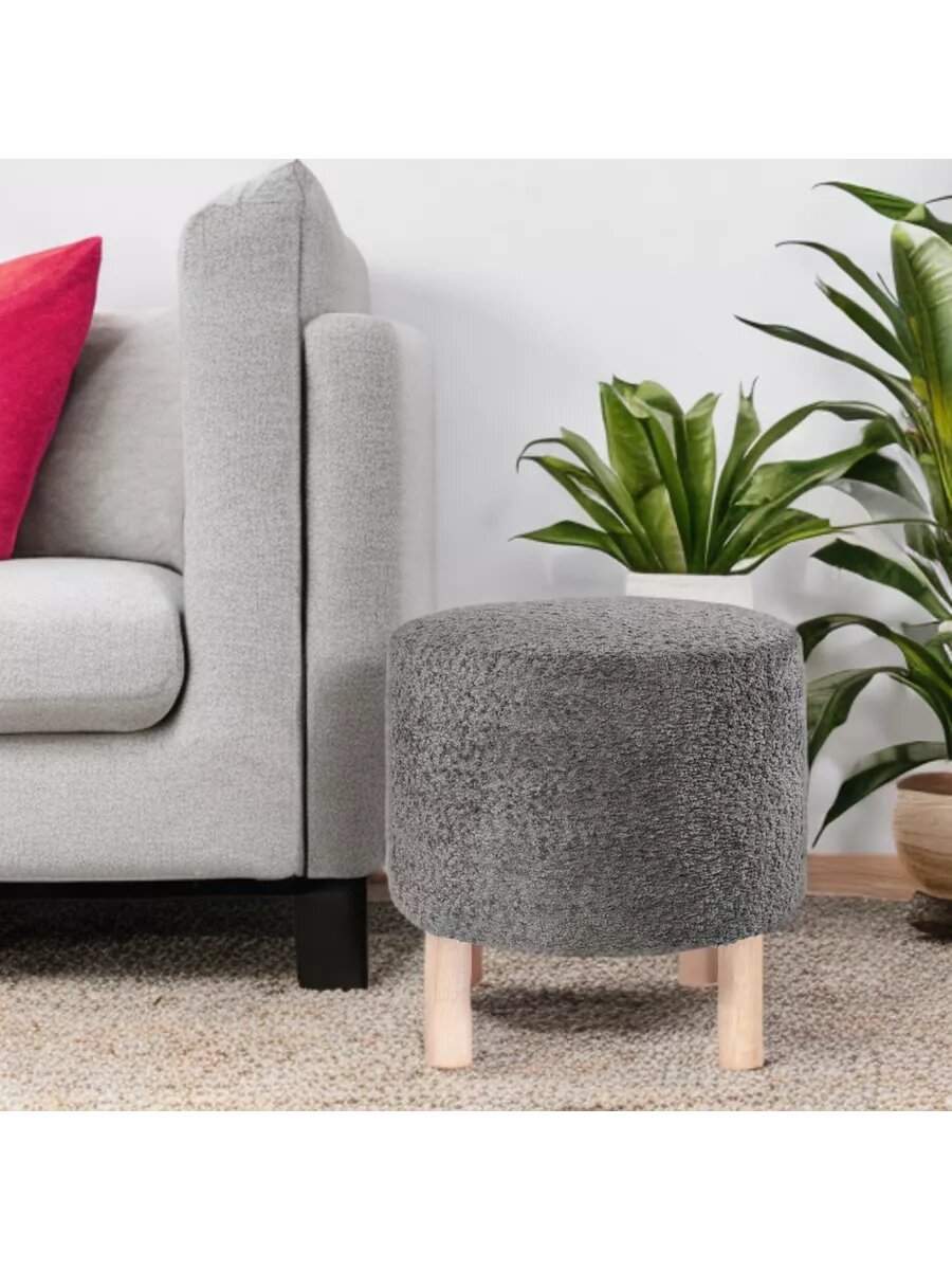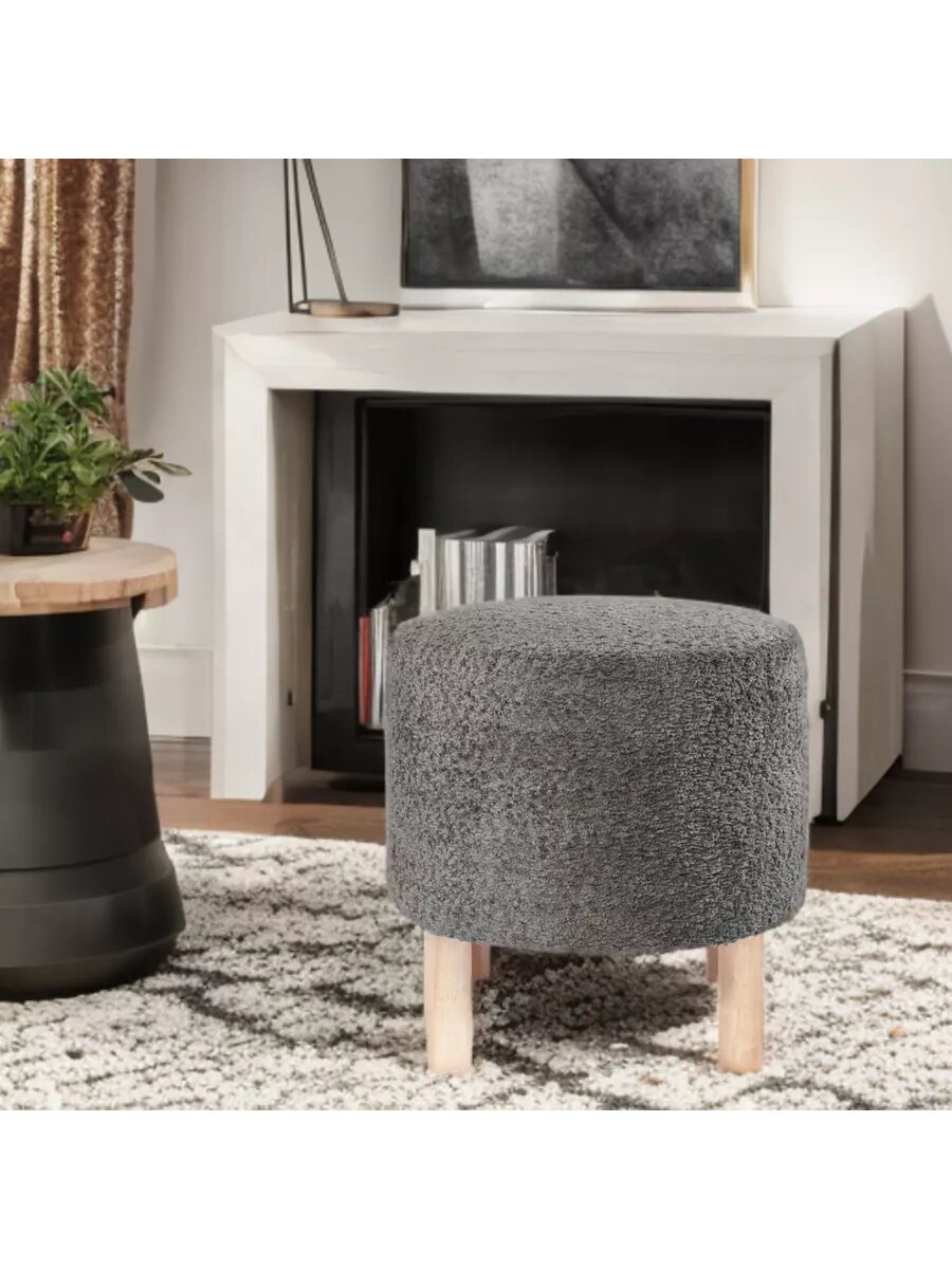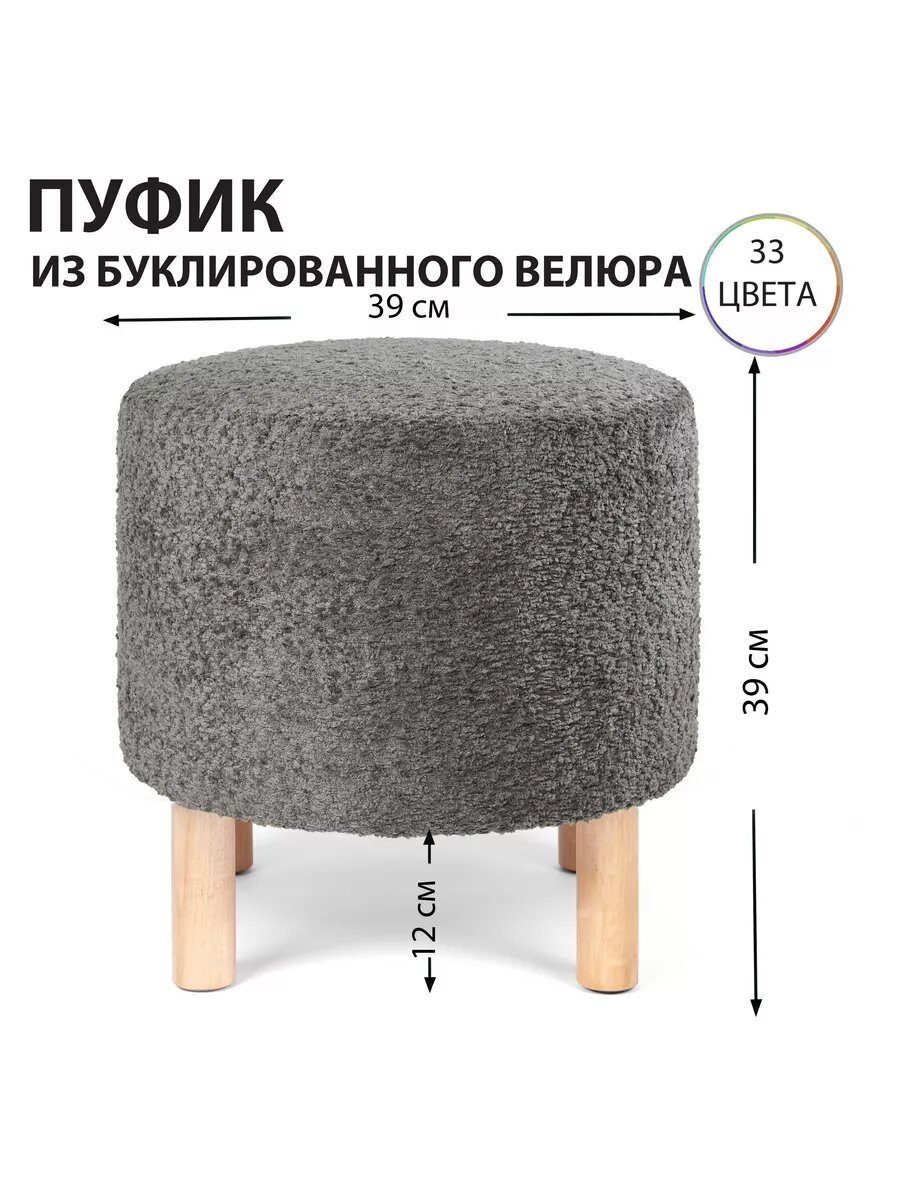 Мягкий Пуфик круглый из велюра Букле на деревянных ножках