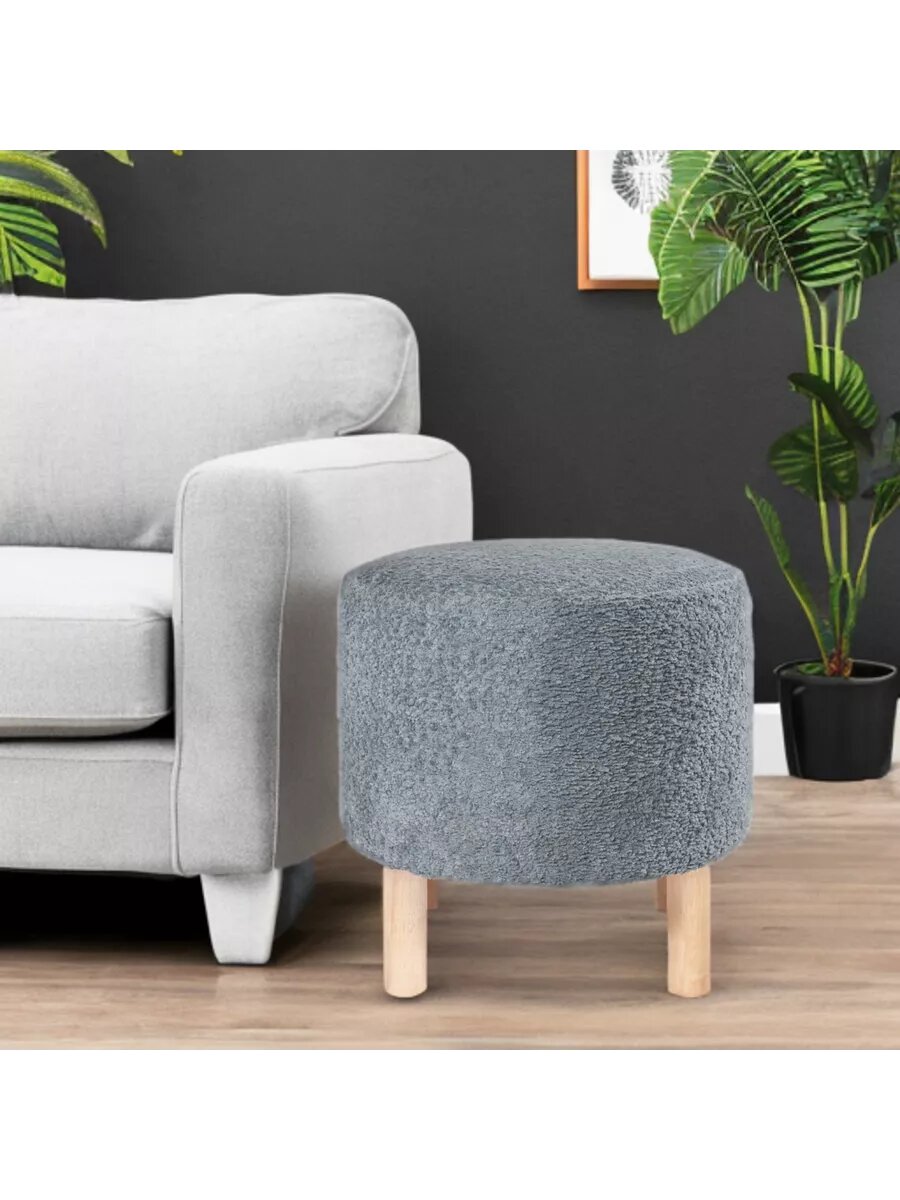 Мягкий Пуфик круглый из велюра Букле на деревянных ножках