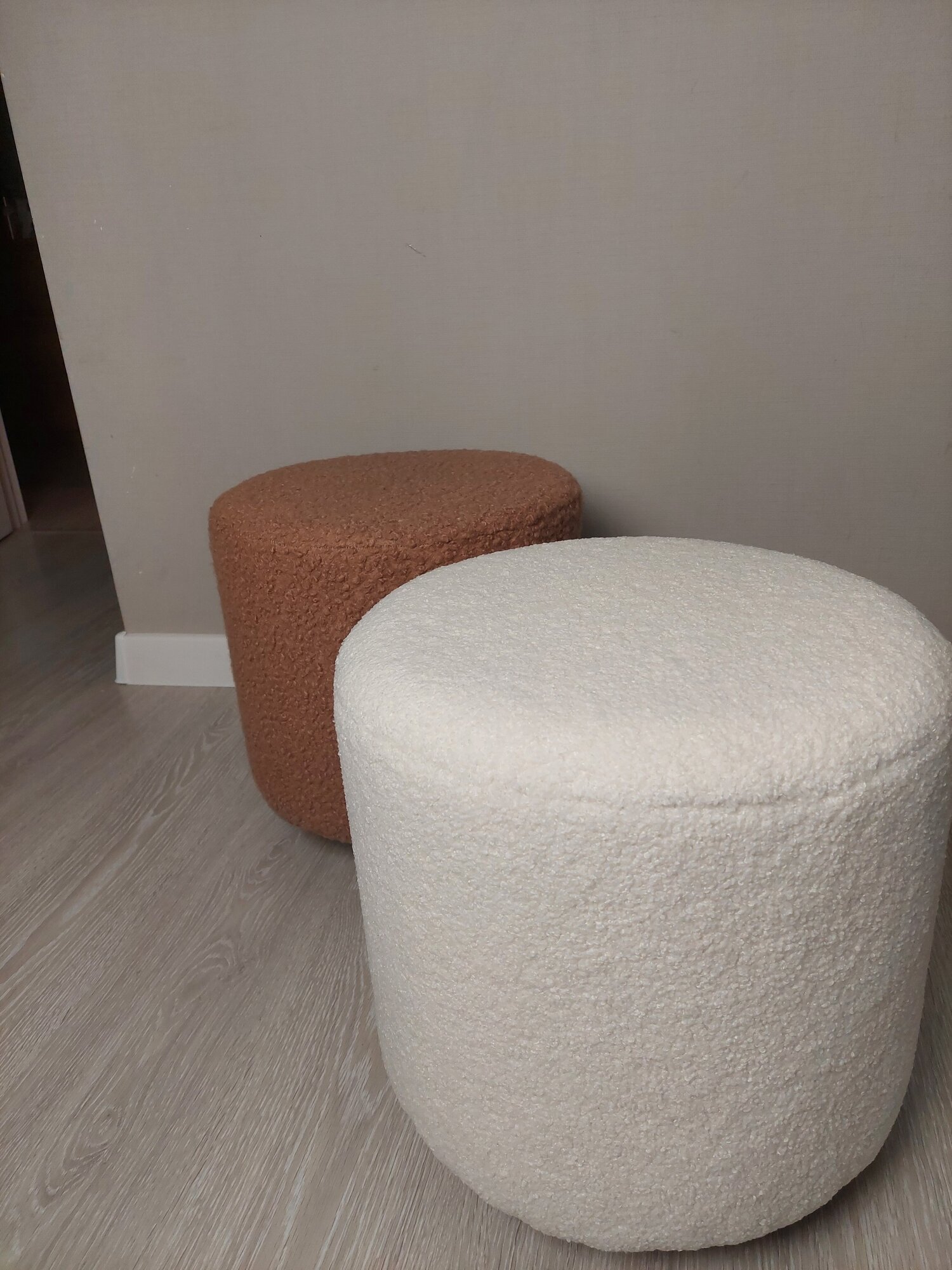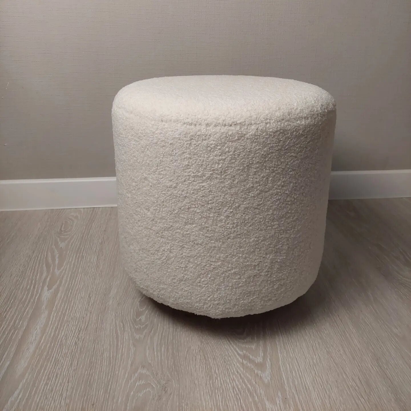 Пуф 40 см из ткани букле молочного цвета
