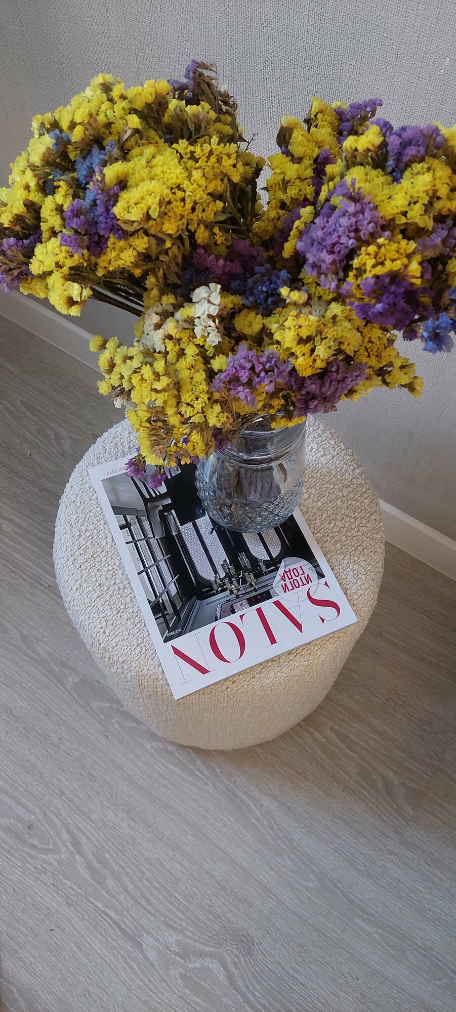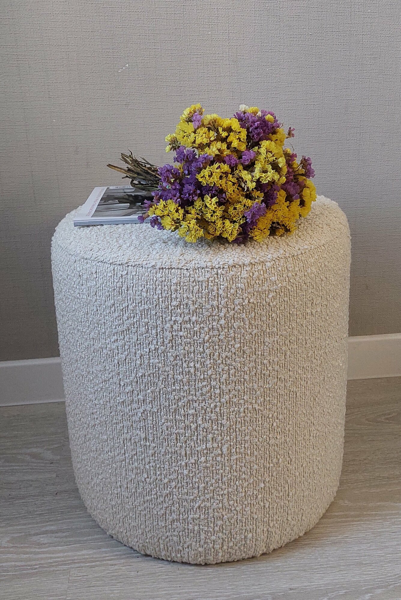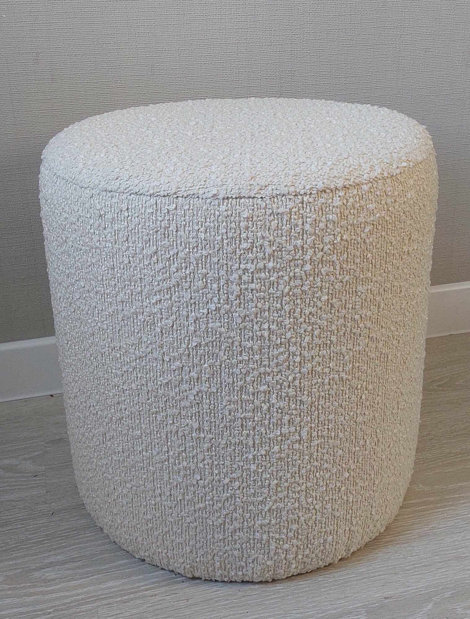 Пуф 40 см из ткани букле молочного цвета интересное:
