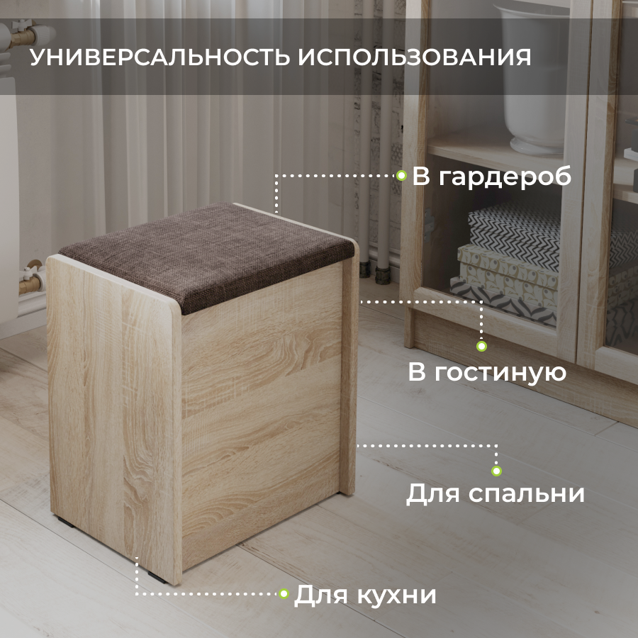 СохранитьПуф Чикаго Тип 1, Дуб сонома/Рогожка Коричневый, табурет для кухни, банкетка в прихожую, мебель для кухни, с ящиком для хранения интересное: