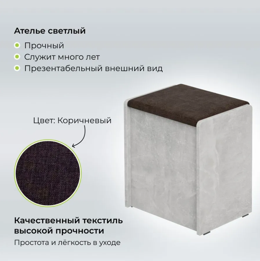 СохранитьПуф Чикаго Тип 1 BONMEBEL, Ателье светлый/Рогожка коричневый, табурет для кухни, банкетка в прихожую, мебель для кухни, с ящиком для хранения интересное: