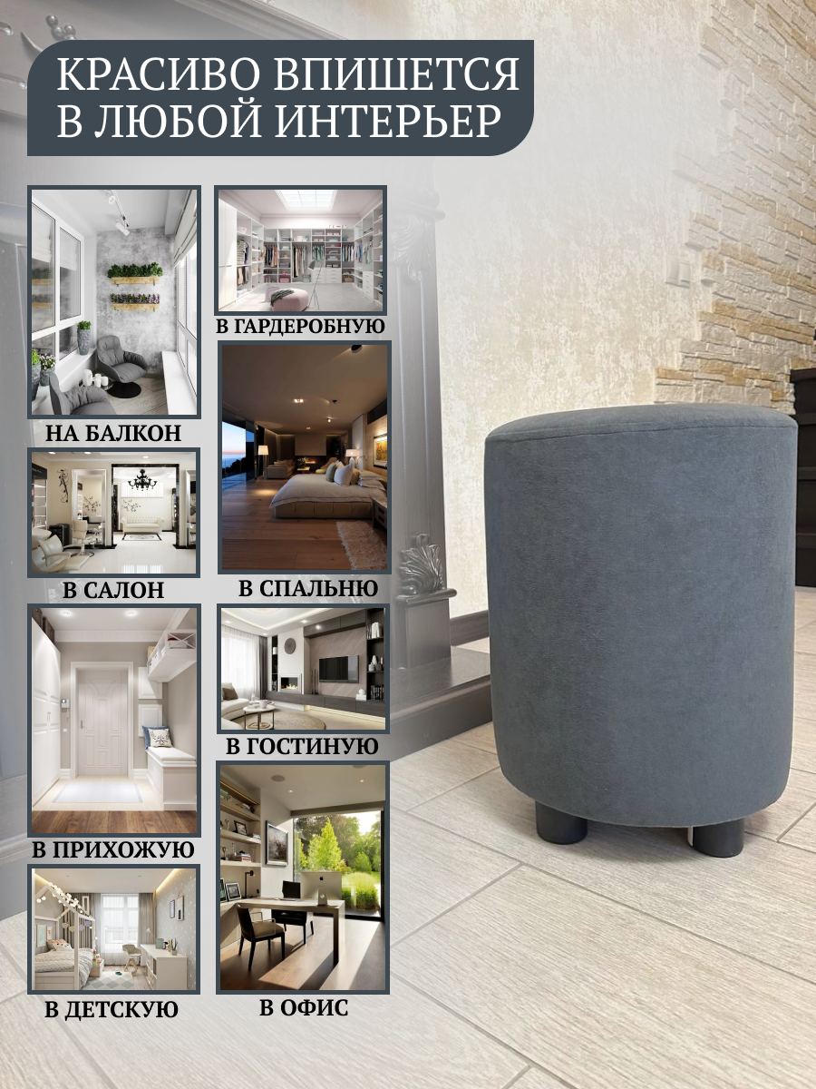 Пуфик Davidoff-Pro 32*32*45, антивандальный велюр, в спальню и прихожую