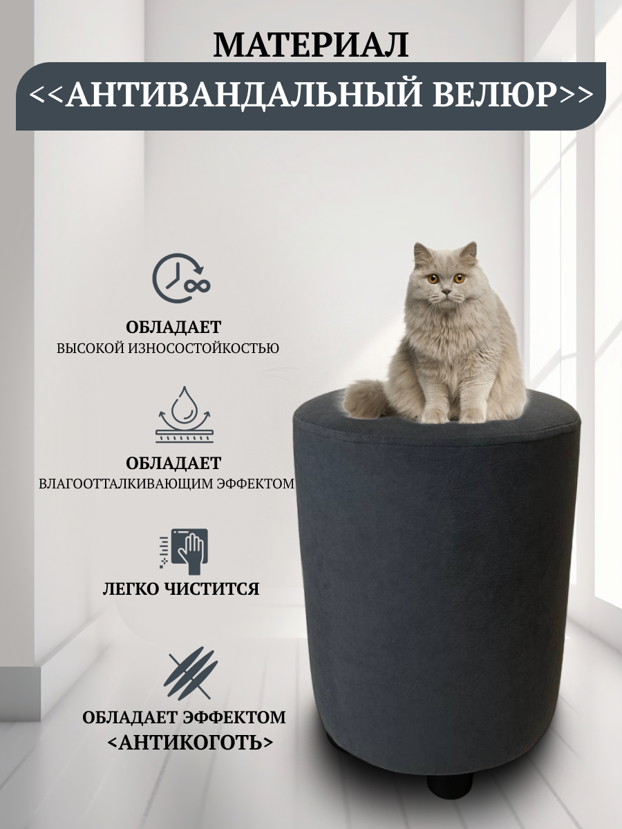 Пуф Davidoff-Pro 32*32*45, антивандальный велюр, в спальню и прихожую