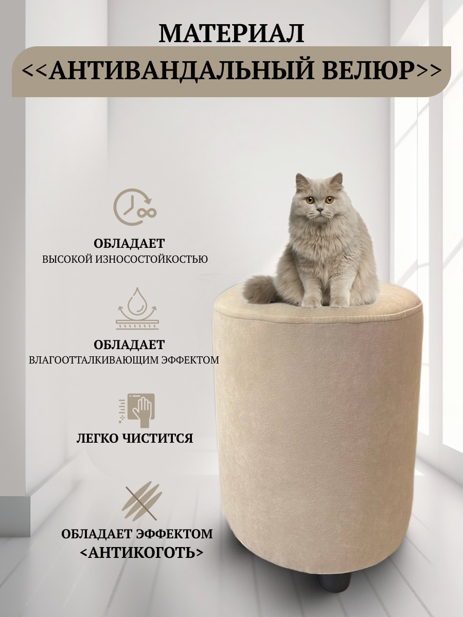 Пуф круглый в прихожую, в спальню Davidoff-Pro 32*32*45, антивандальный велюр