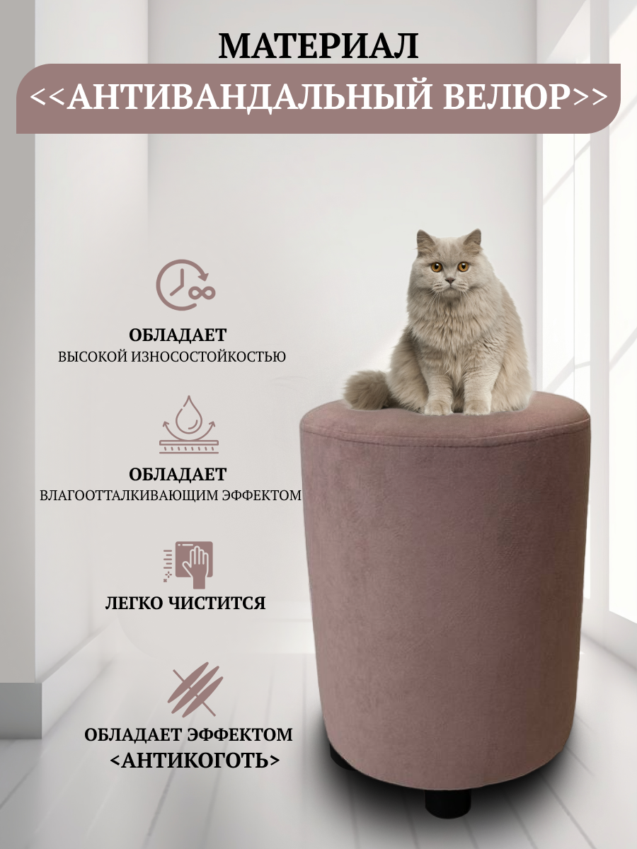 Пуф круглый в прихожую, в спальню Davidoff-Pro 32*32*45, антивандальный велюр