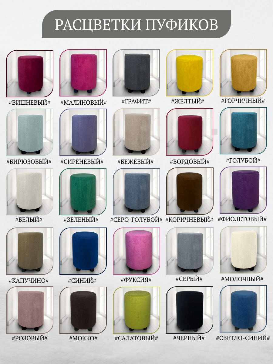 Ниже Вы можете прочитать отзывы на Пуфик круглый для прихожей и спальни Davidoff-Pro 32*32*45, антивандальный велюр, ознакомится с подробными характеристиками, посмотреть интересные обзоры и фотографии на Пуфик круглый для прихожей и спальни Davidoff-Pro 32*32*45, антивандальный велюр.