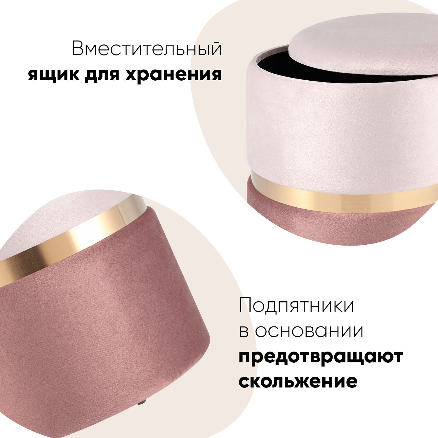 Купить Пуф Кэрри с ящиком, велюр розовый