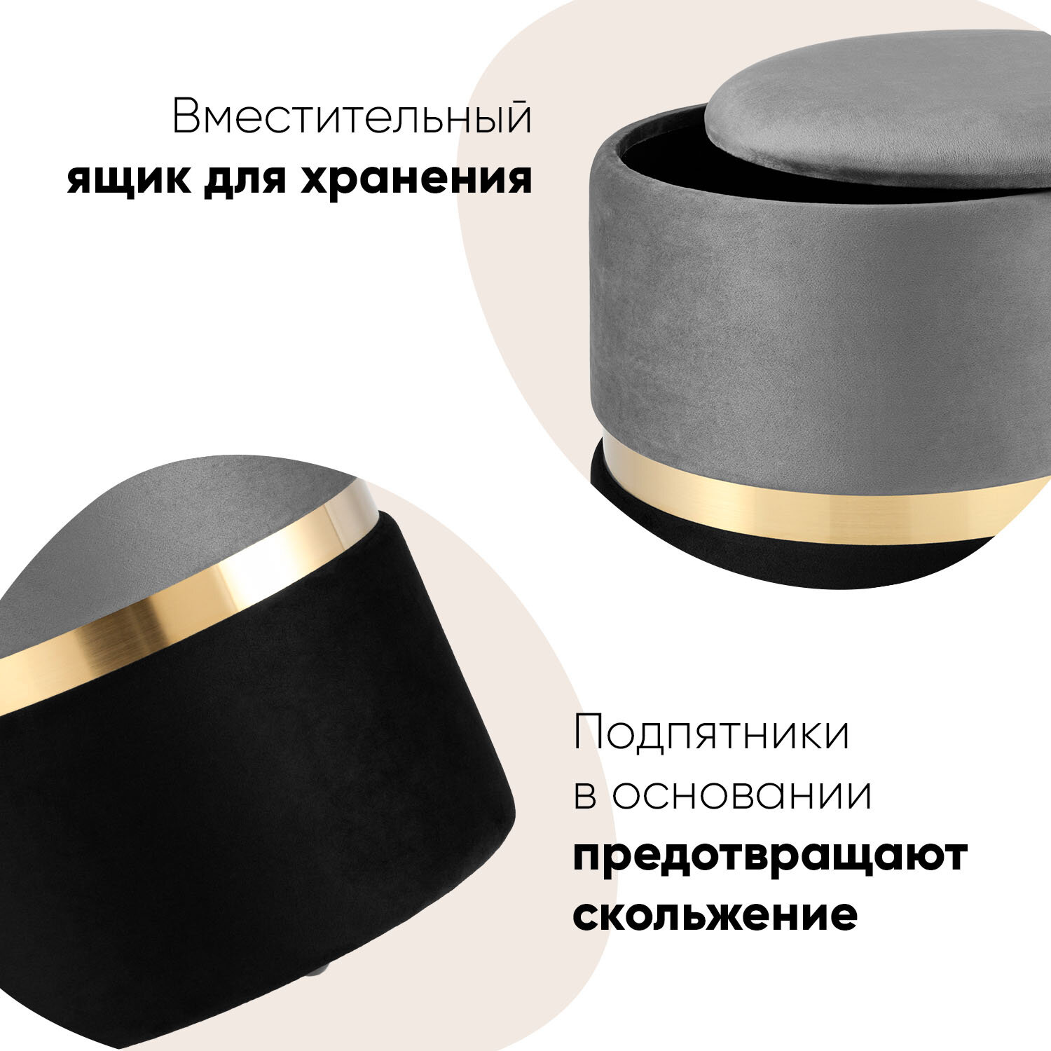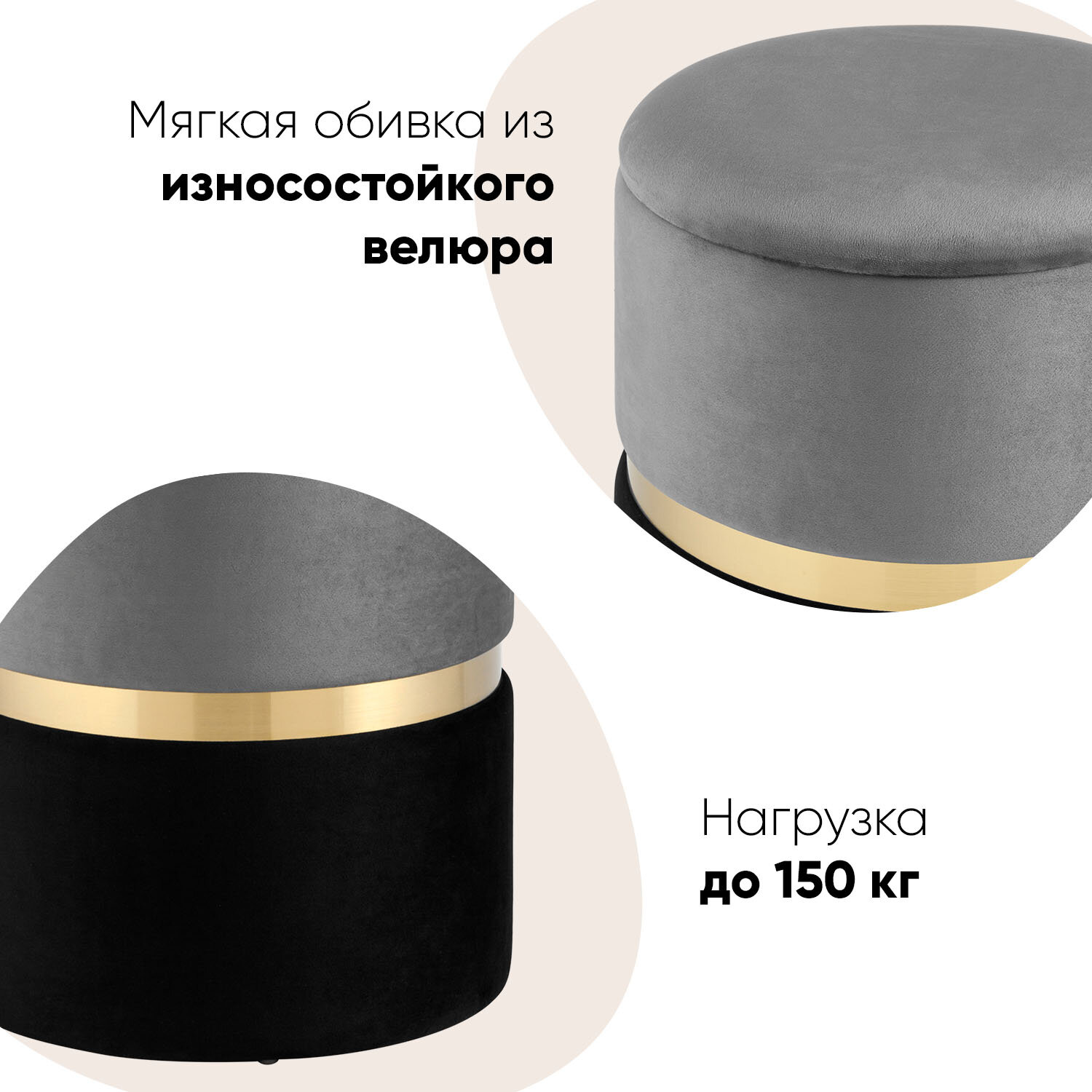 Купить Пуф Кэрри с ящиком, велюр серо-черный