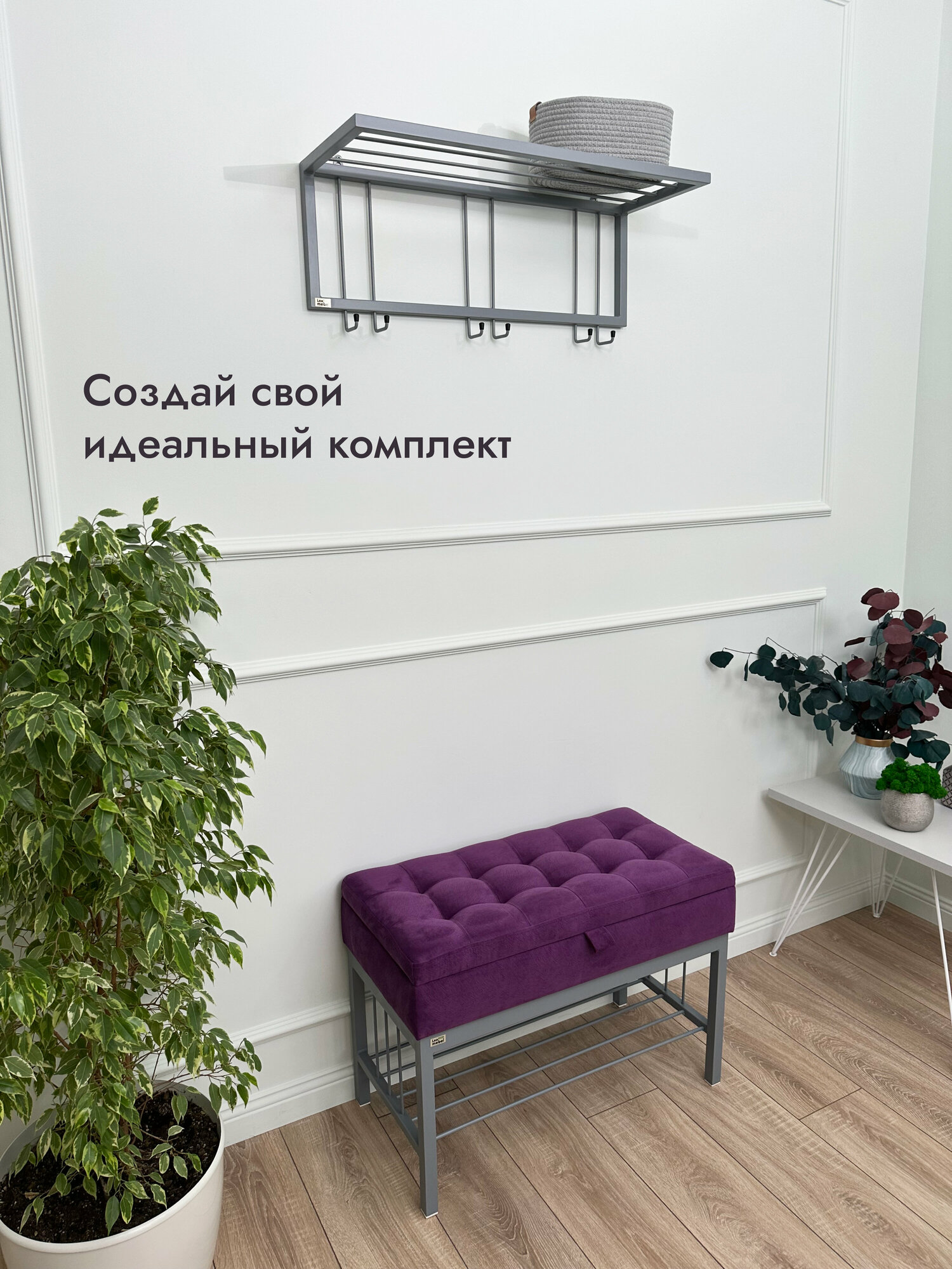 СохранитьБанкетка в прихожую Леомебель обувница с сиденьем 76х53х39 Серый-фиолетовый интересное: