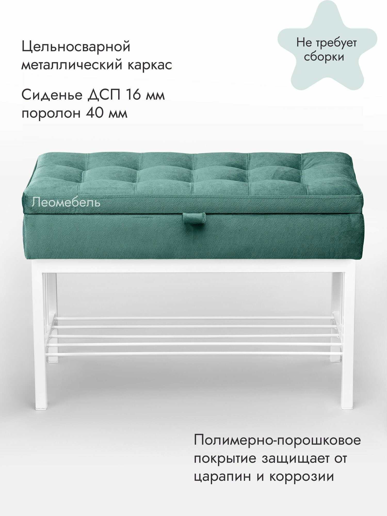 Купить Банкетка в прихожую Леомебель обувница с сиденьем 76х53х39 Белый-бирюзовый