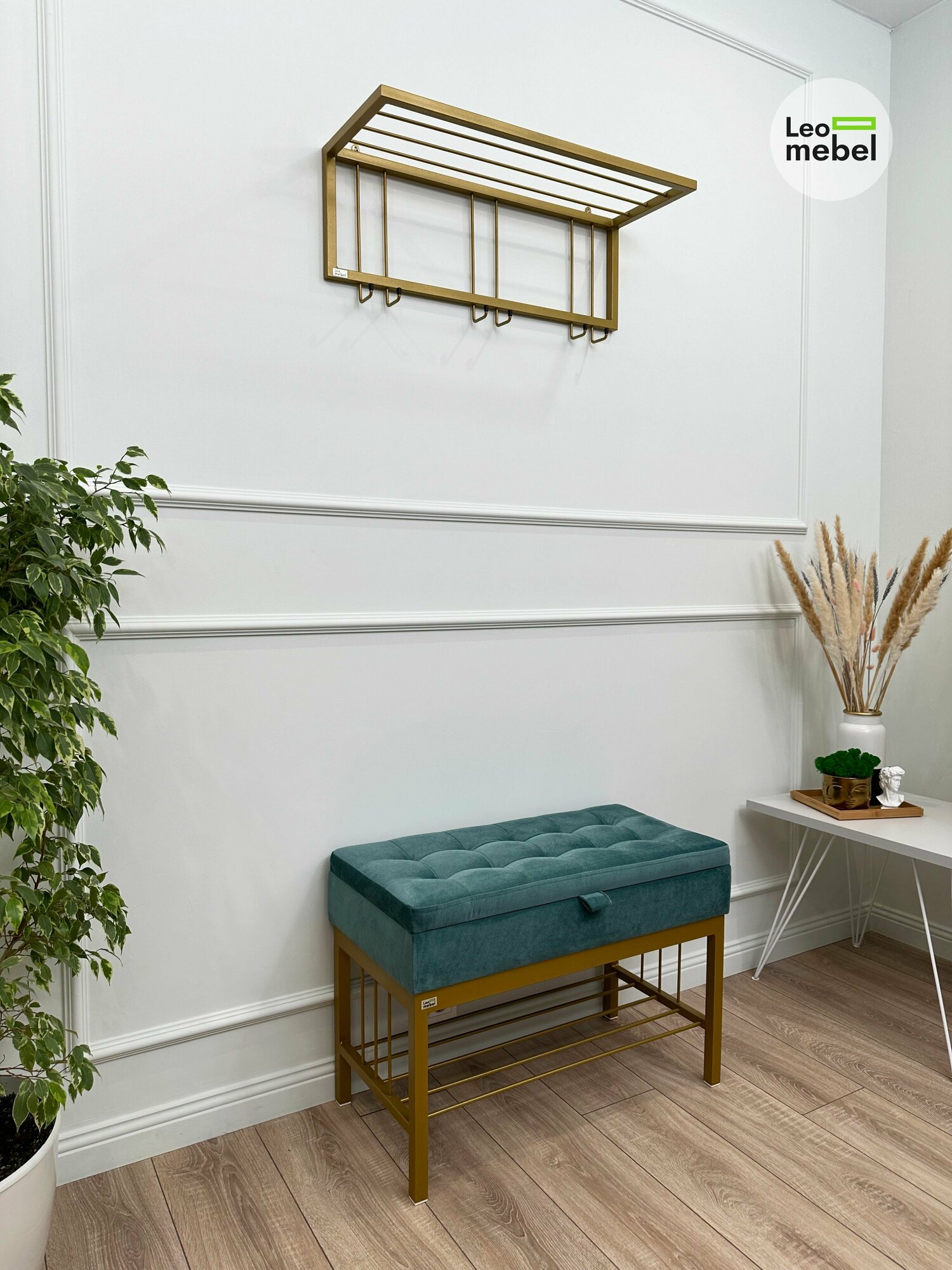 Купить Банкетка в прихожую Леомебель обувница с сиденьем 76х53х39 Золотистый-бирюзовый
