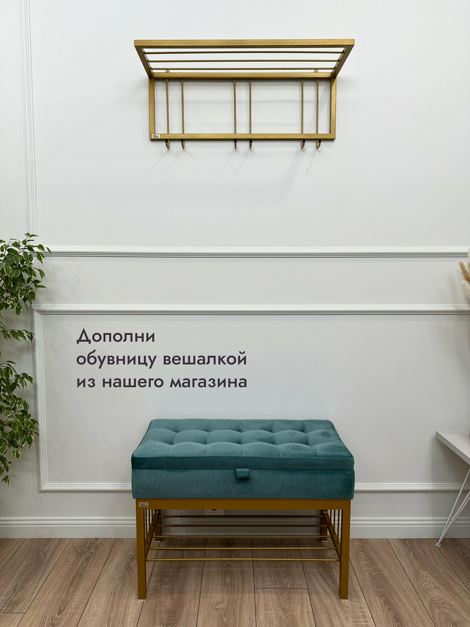 СохранитьБанкетка в прихожую Леомебель обувница с сиденьем 76х53х39 Золотистый-бирюзовый интересное: