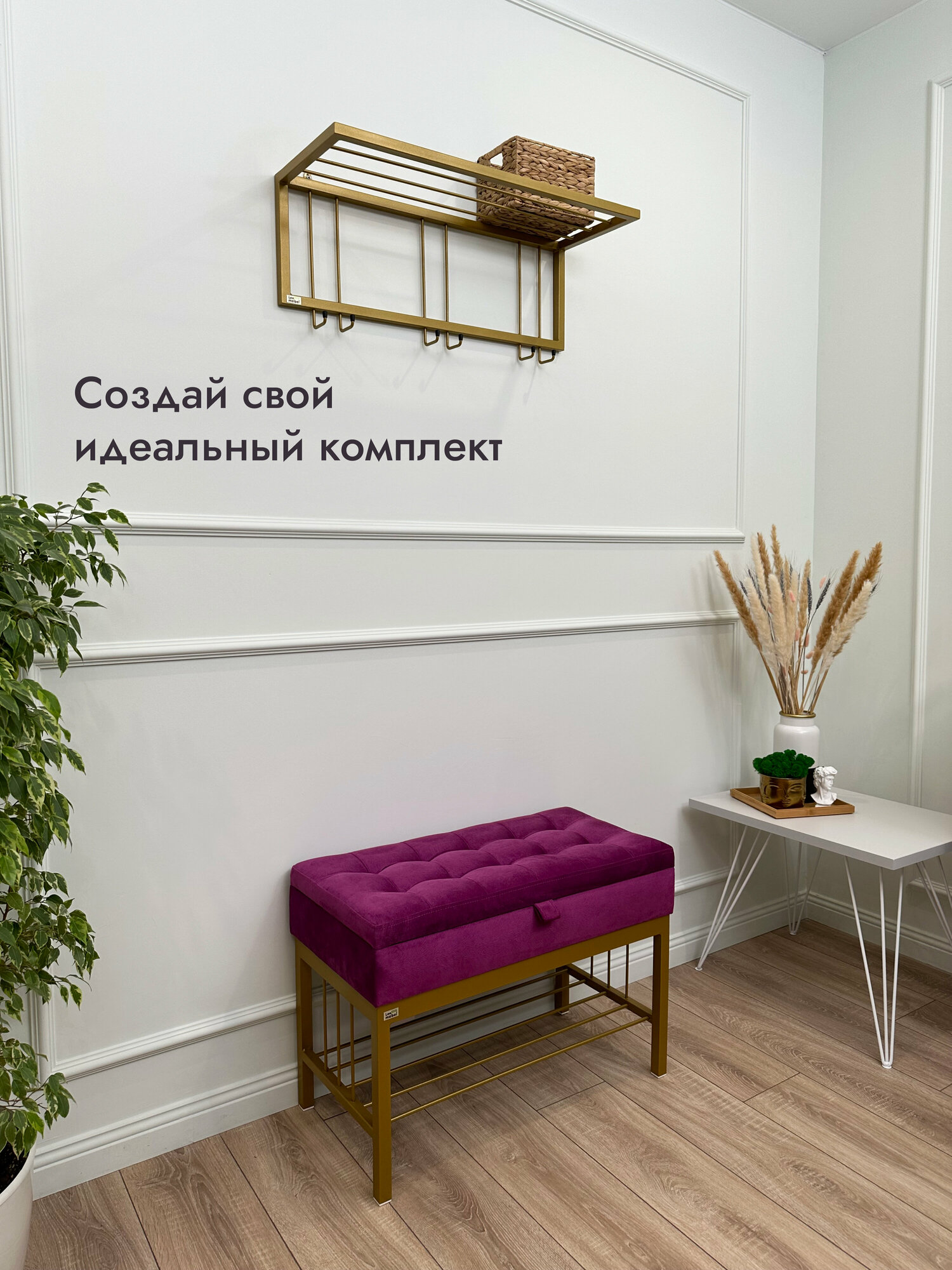 СохранитьБанкетка в прихожую Леомебель обувница с сиденьем 76х53х39 Золотистый-фуксия интересное: