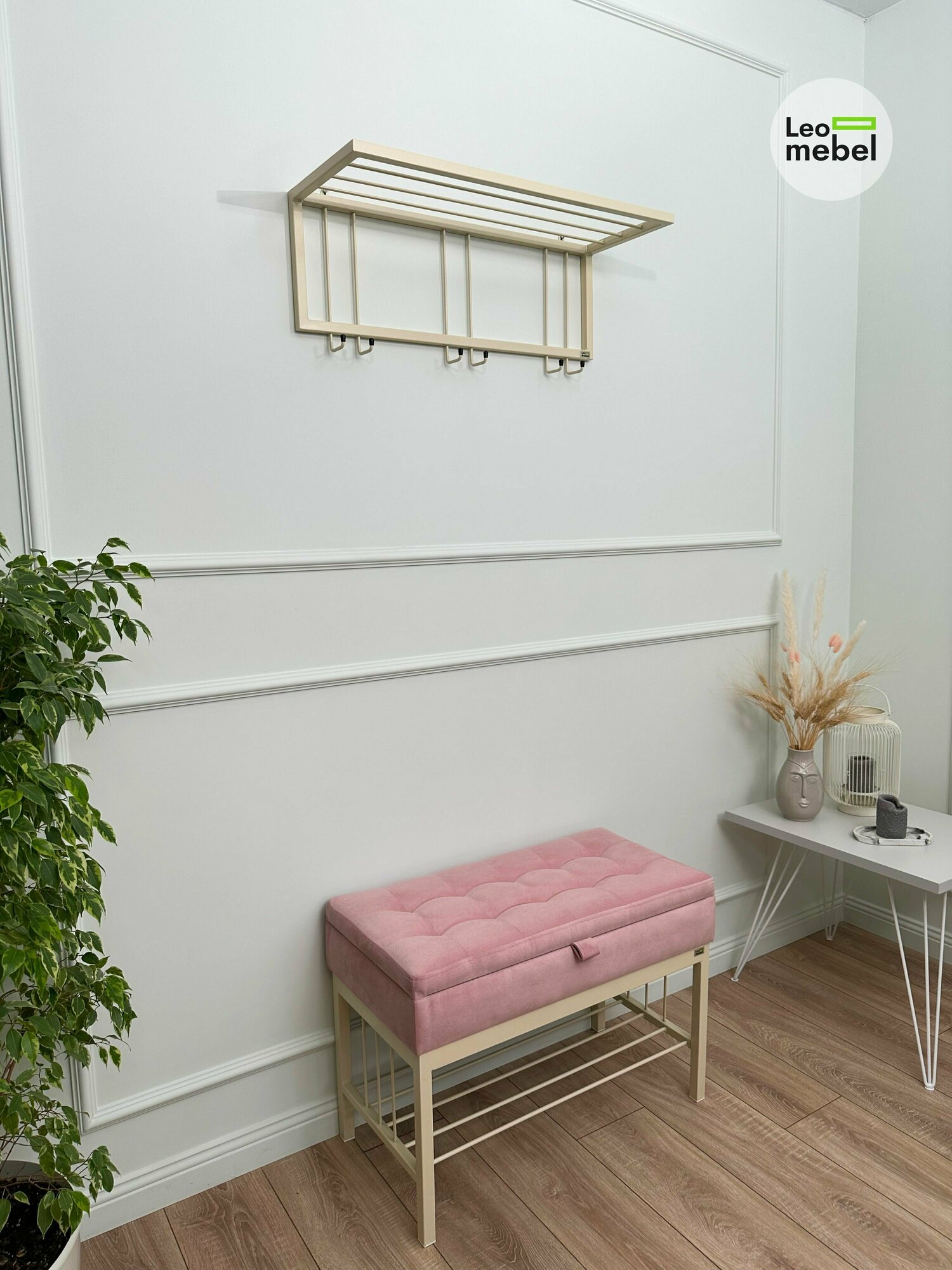 Банкетка в прихожую Леомебель обувница с сиденьем 76х53х39 Золотистый-светло-розовый