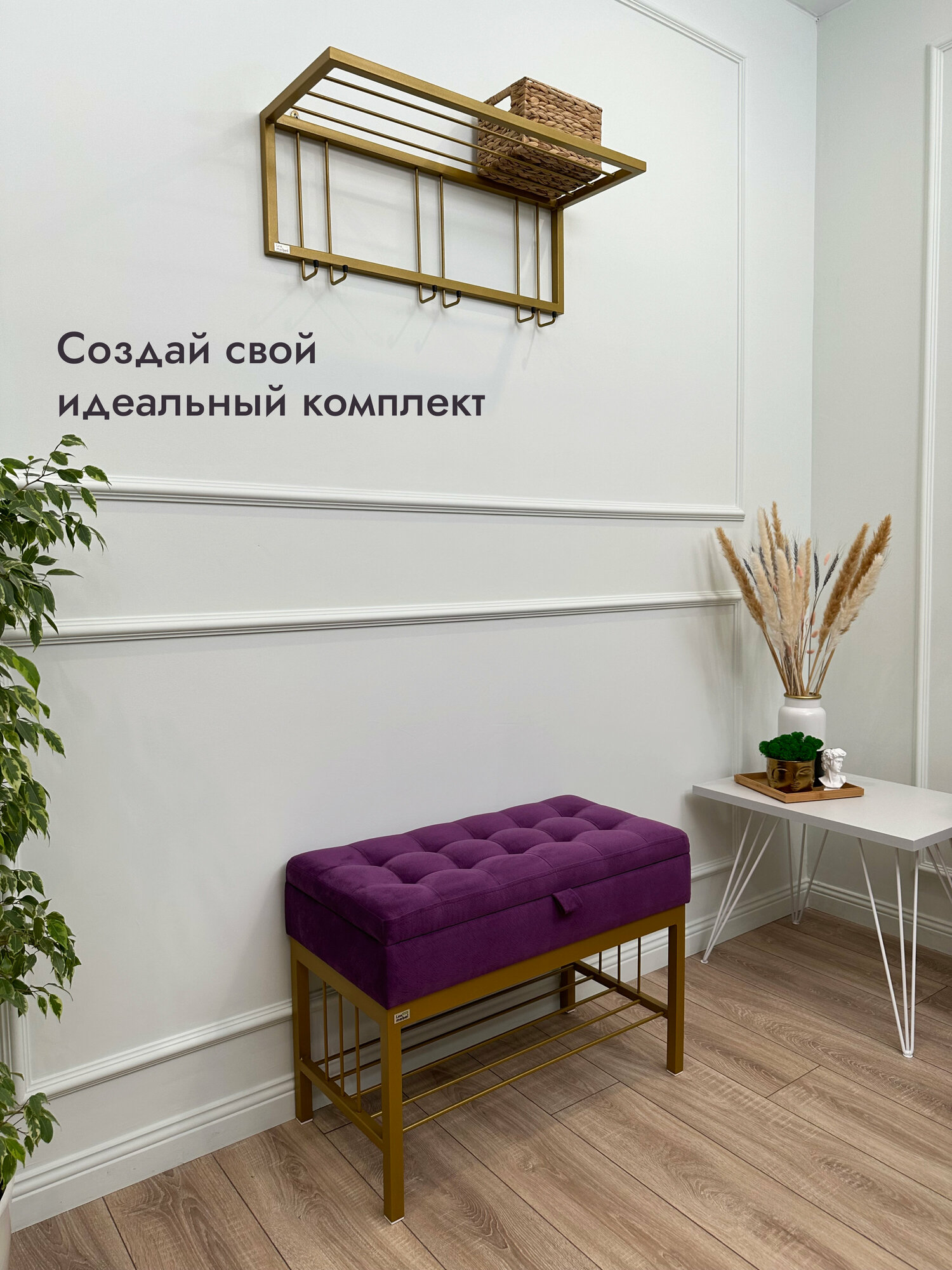 СохранитьБанкетка в прихожую Леомебель обувница с сиденьем 76х53х39 Золотистый-фиолетовый интересное: