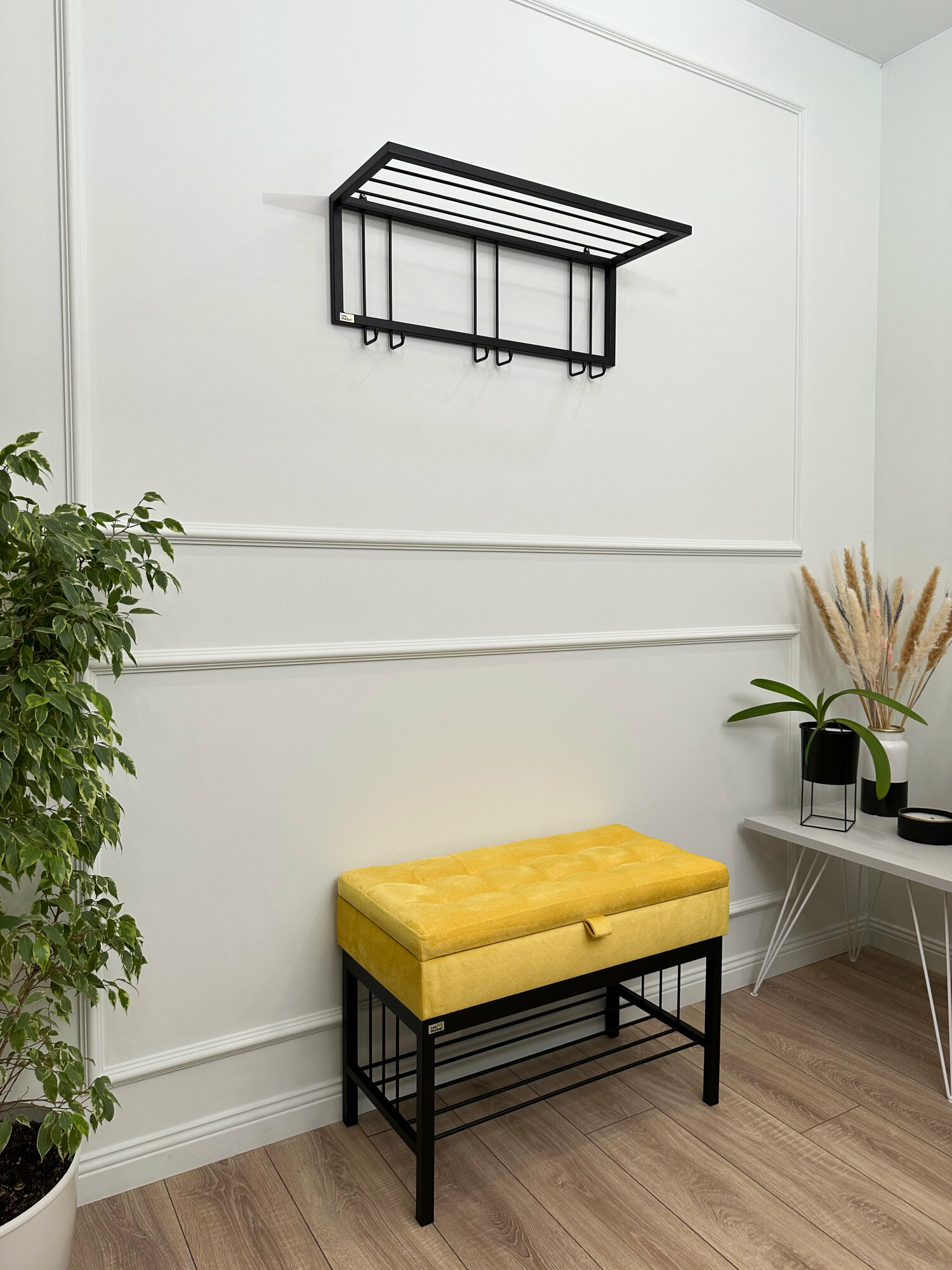Купить Банкетка в прихожую Леомебель обувница с сиденьем 76х53х39 Черный-желтый