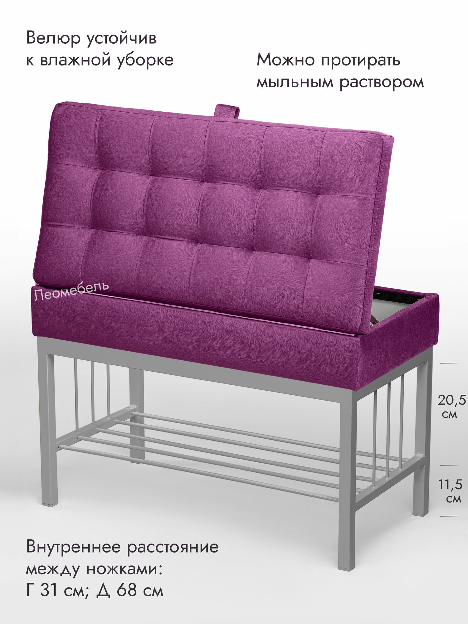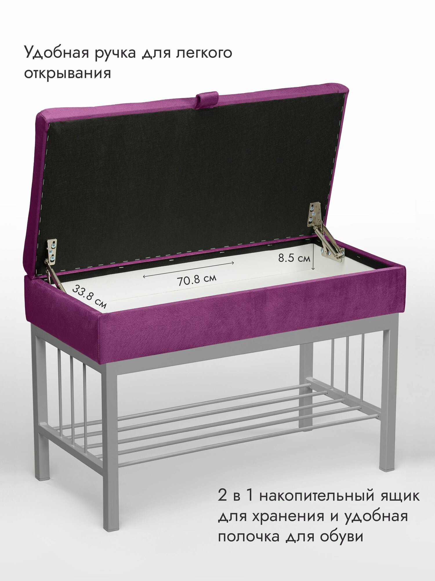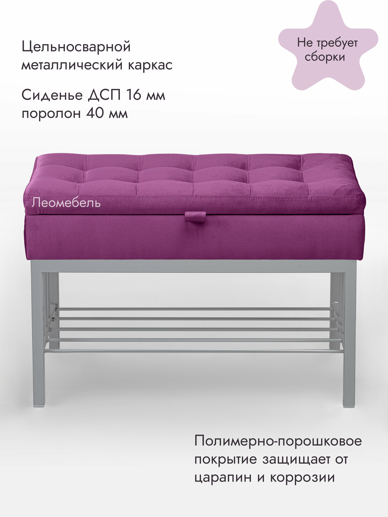 Банкетка в прихожую Леомебель обувница с сиденьем 76х53х39 Серый-фиолетовый