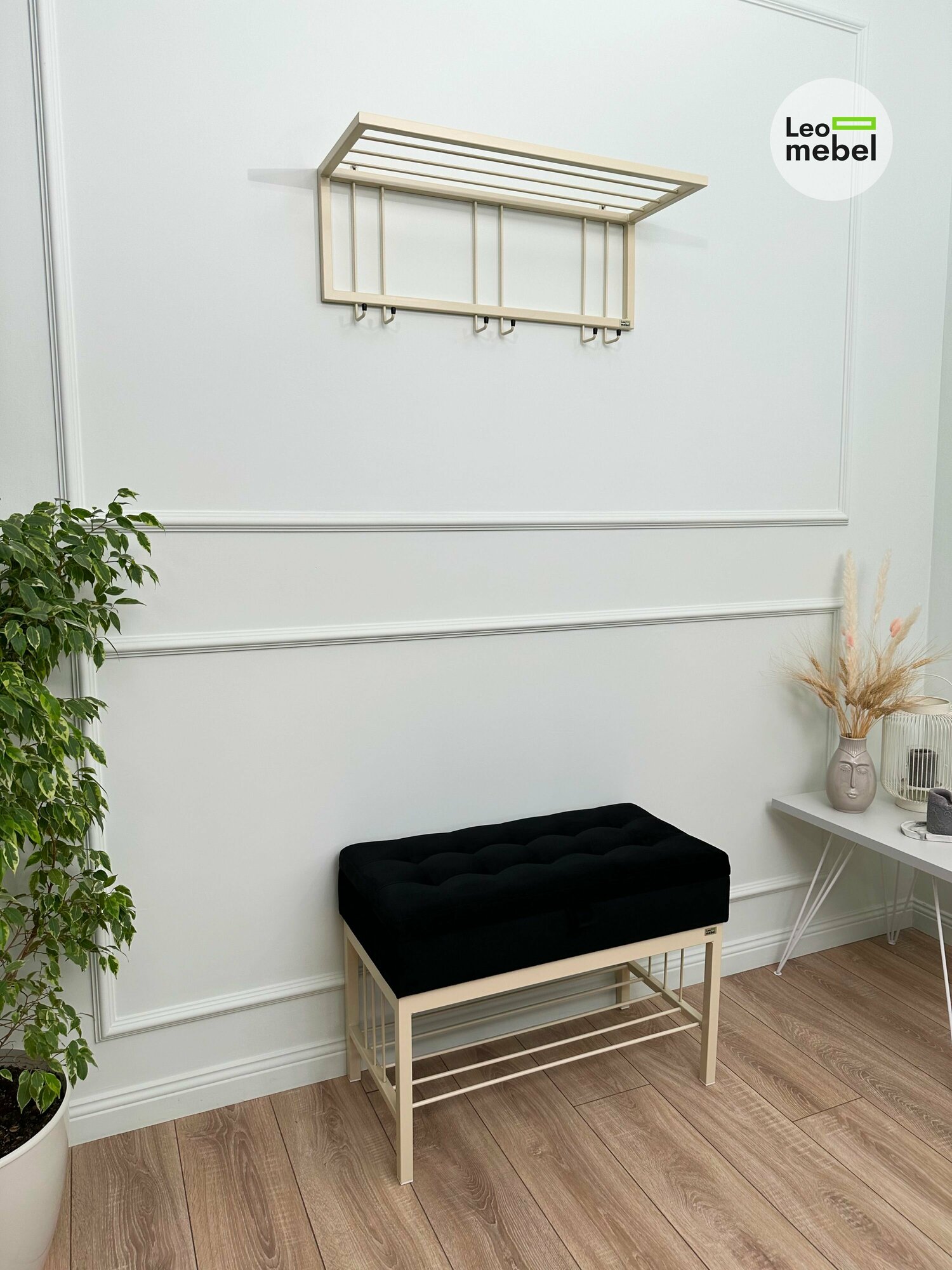 Купить Банкетка в прихожую Леомебель обувница с сиденьем 76х53х39 Бежевый-черный