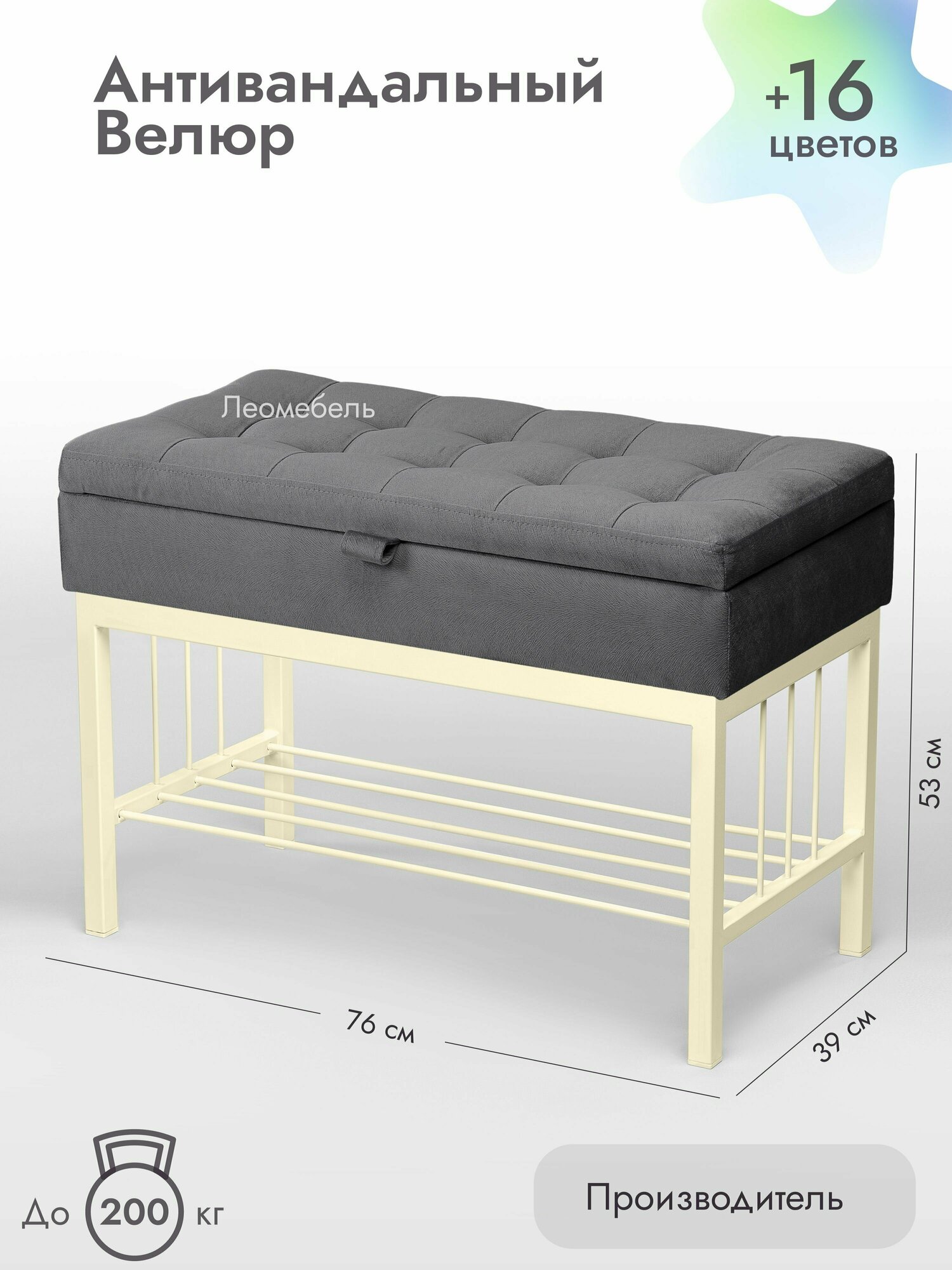 Банкетка в прихожую Леомебель обувница с сиденьем 76х53х39 Черный-серый