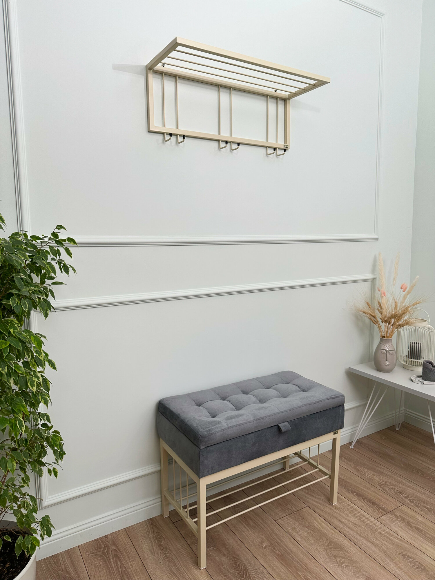 Банкетка в прихожую Леомебель обувница с сиденьем 76х53х39 Золотистый-серый