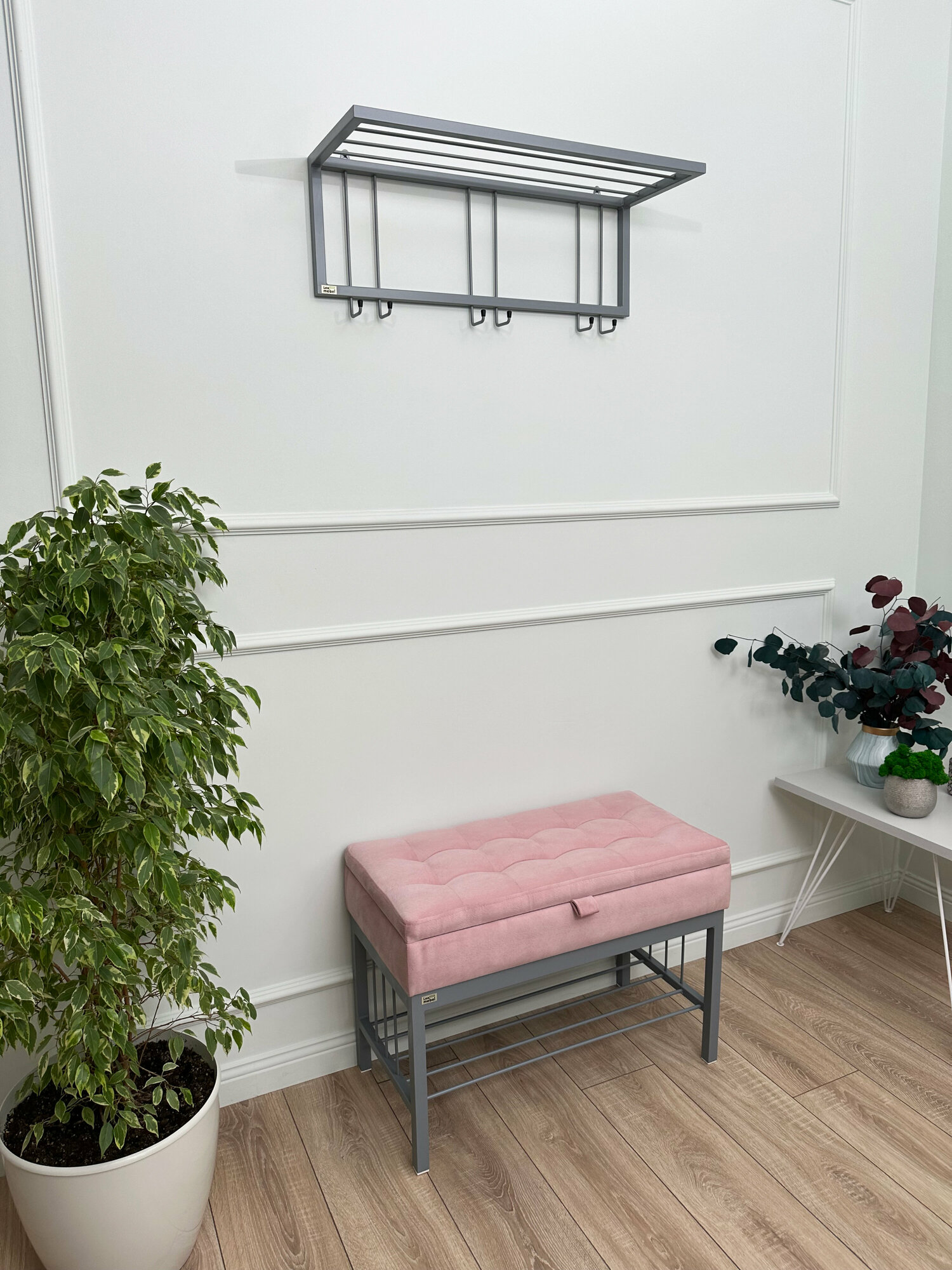 Купить Банкетка в прихожую Леомебель обувница с сиденьем 76х53х39 Серый-светло-розовый