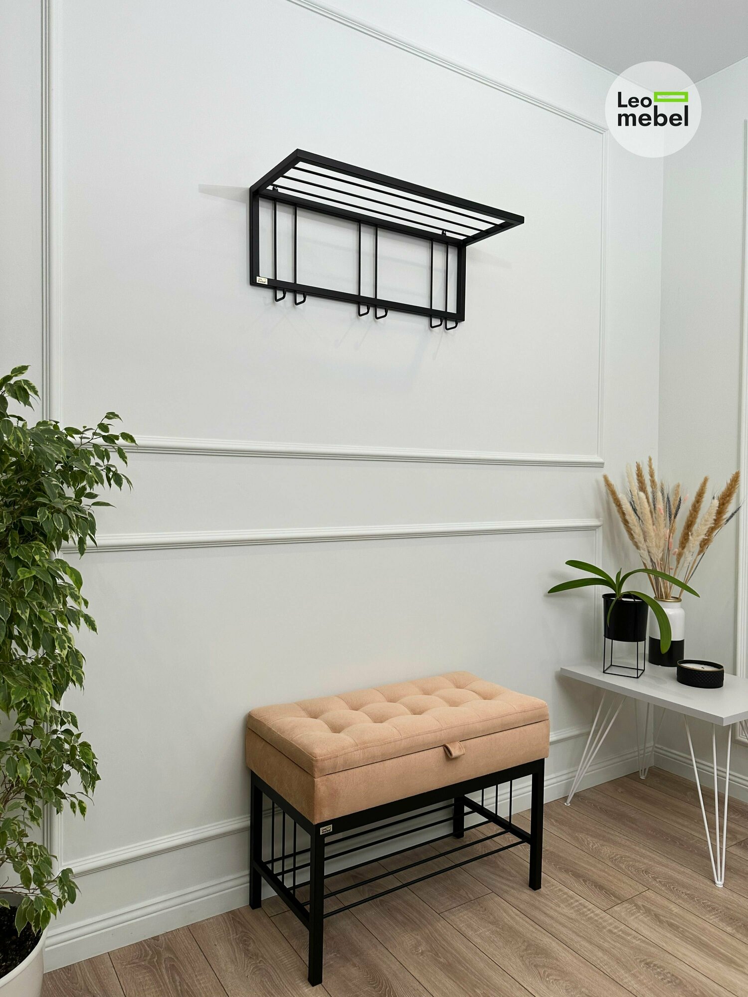 Купить Банкетка в прихожую Леомебель обувница с сиденьем 76х53х39 Черный-персиковый