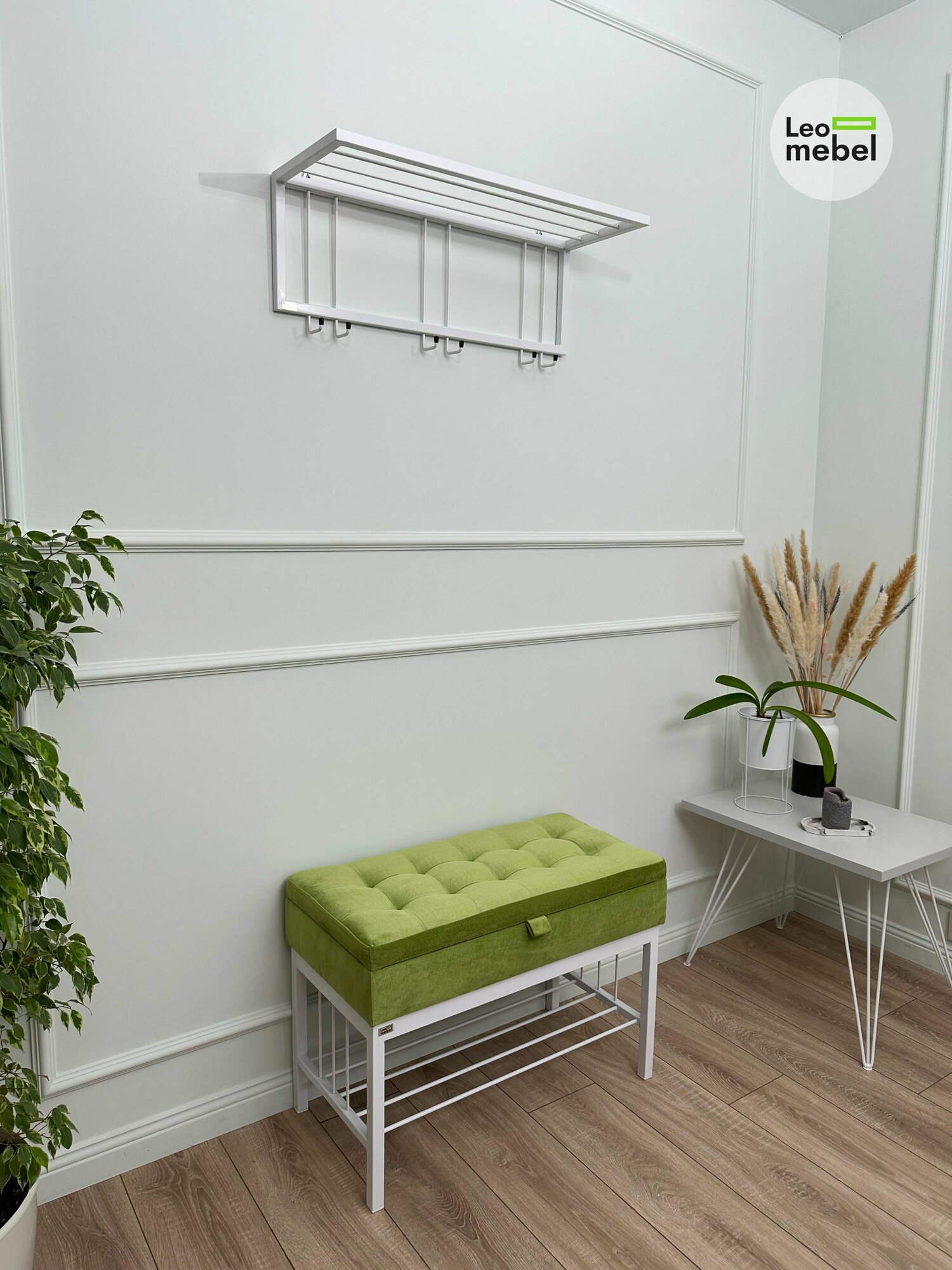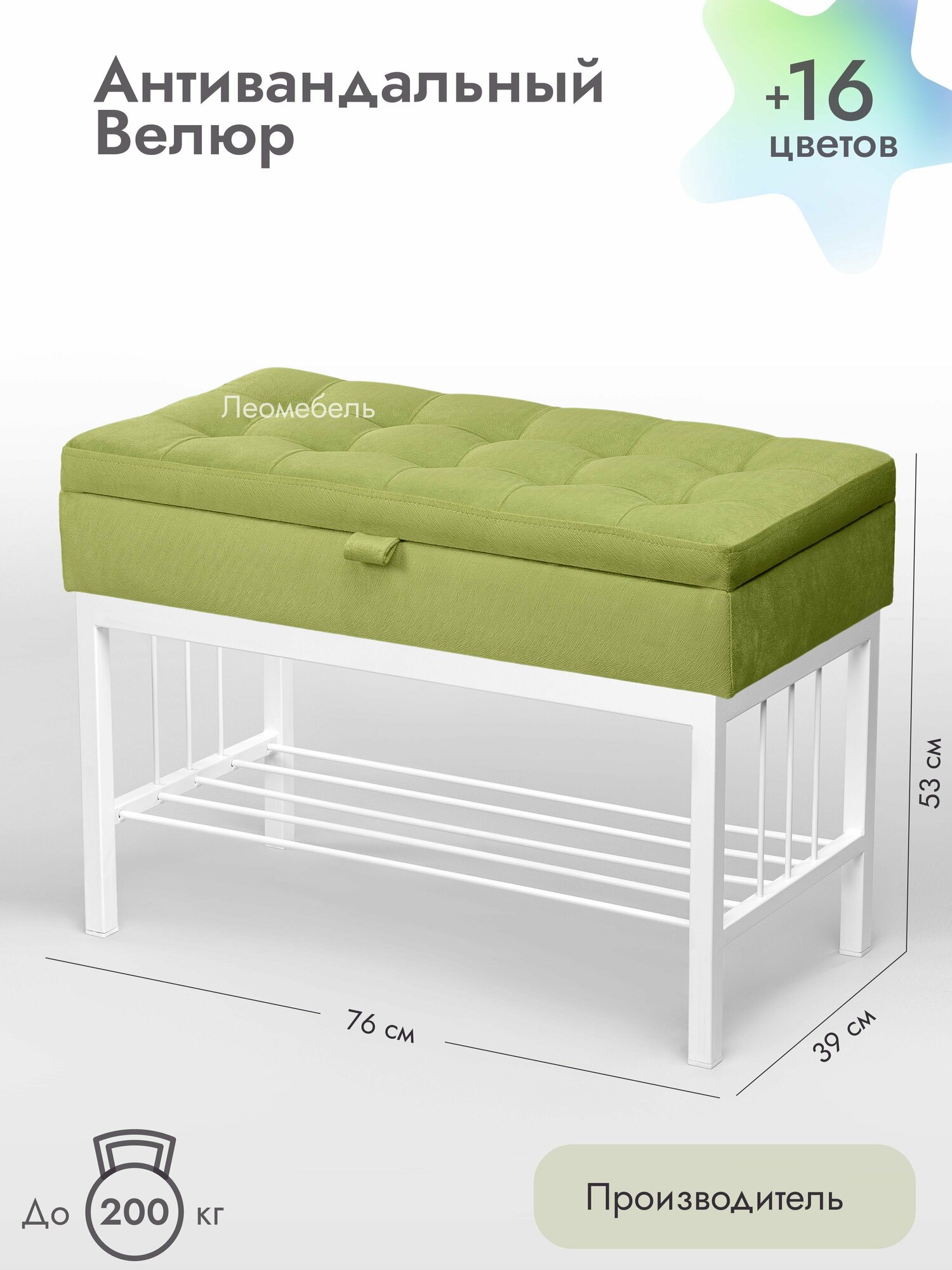 СохранитьБанкетка в прихожую Леомебель обувница с сиденьем 76х53х39 Белый-салатовый интересное: