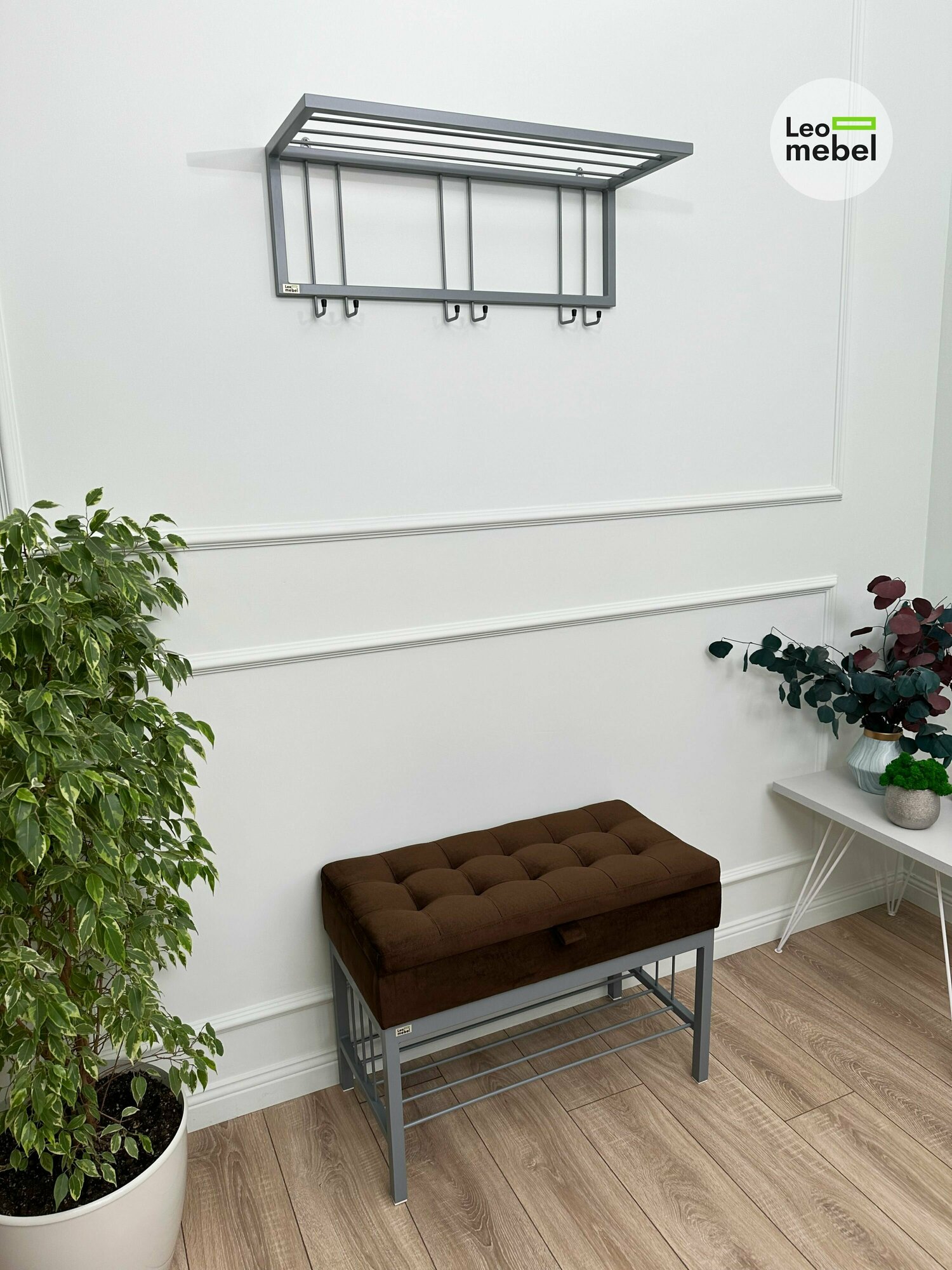 Купить Банкетка в прихожую Леомебель обувница с сиденьем 76х53х39 Серый-коричневый