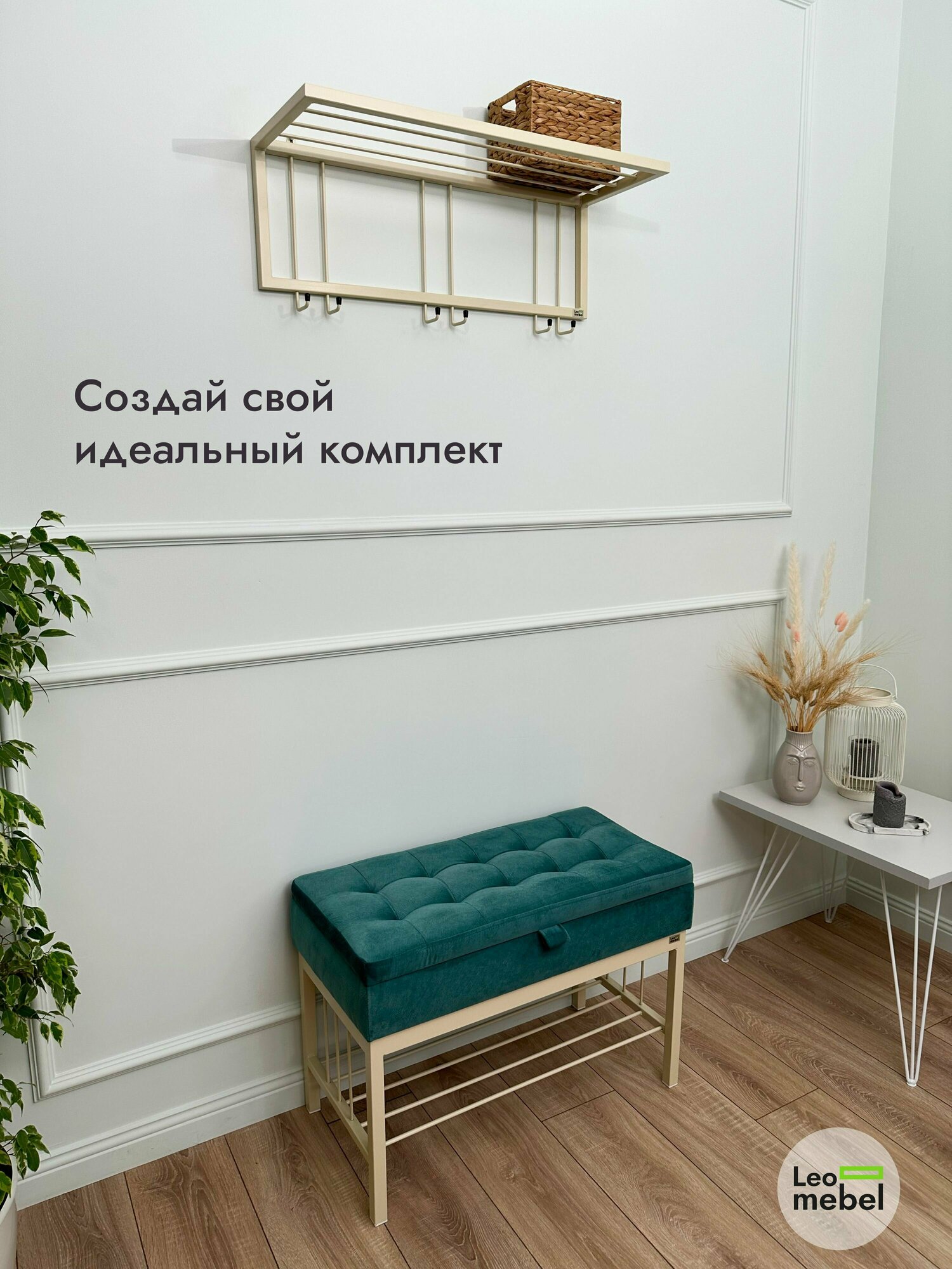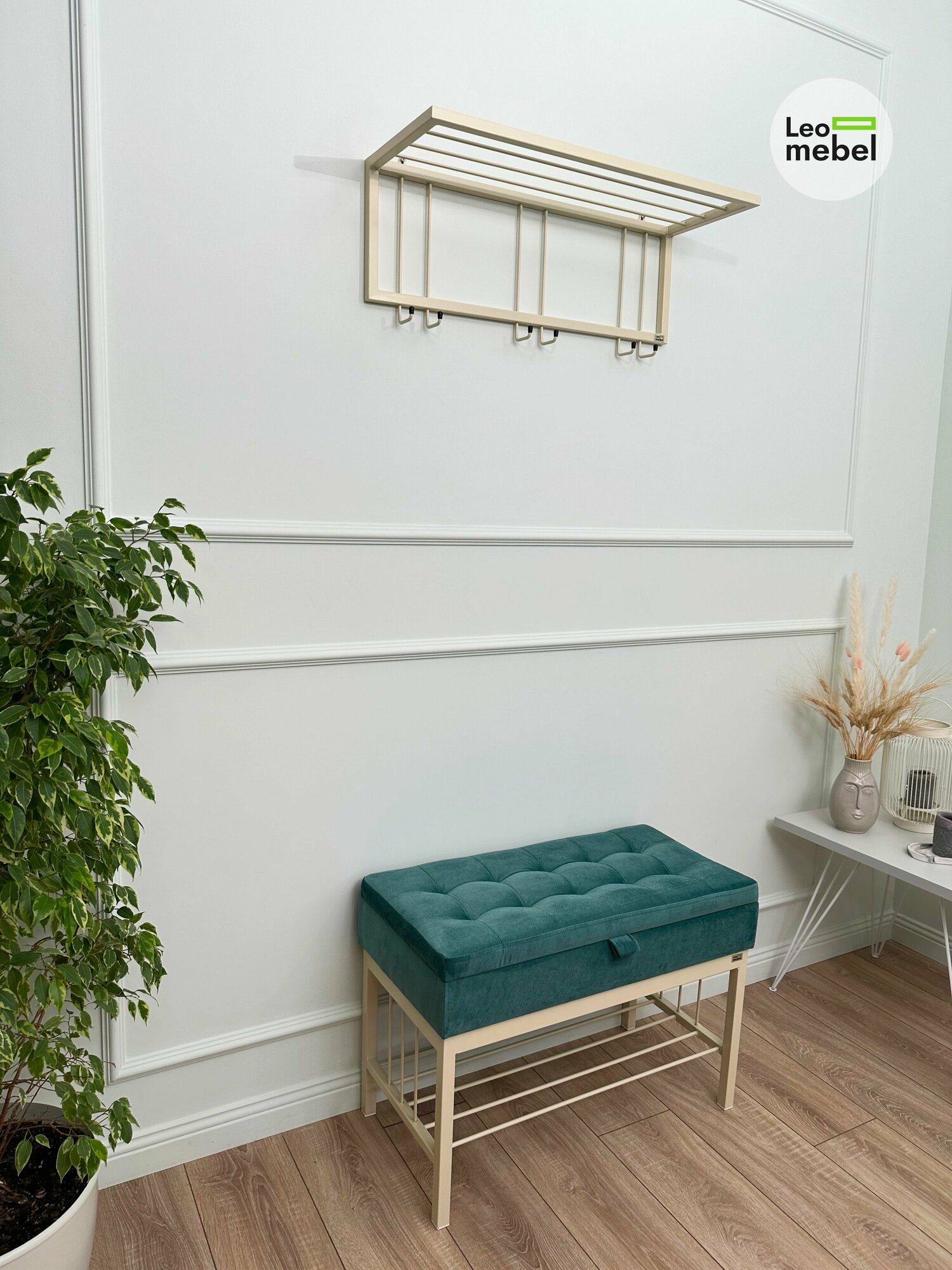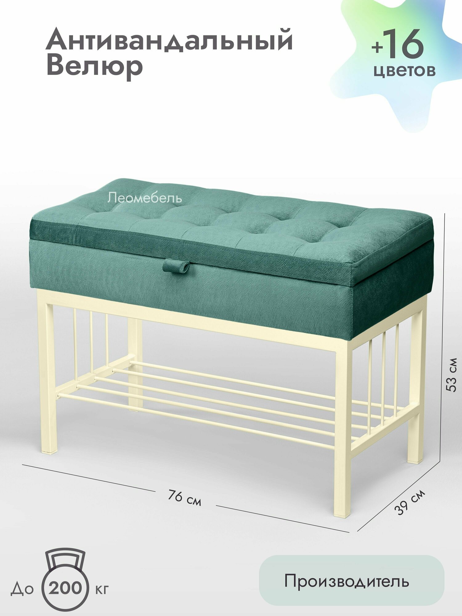 Банкетка в прихожую Леомебель обувница с сиденьем 76х53х39 Золотистый-бирюзовый