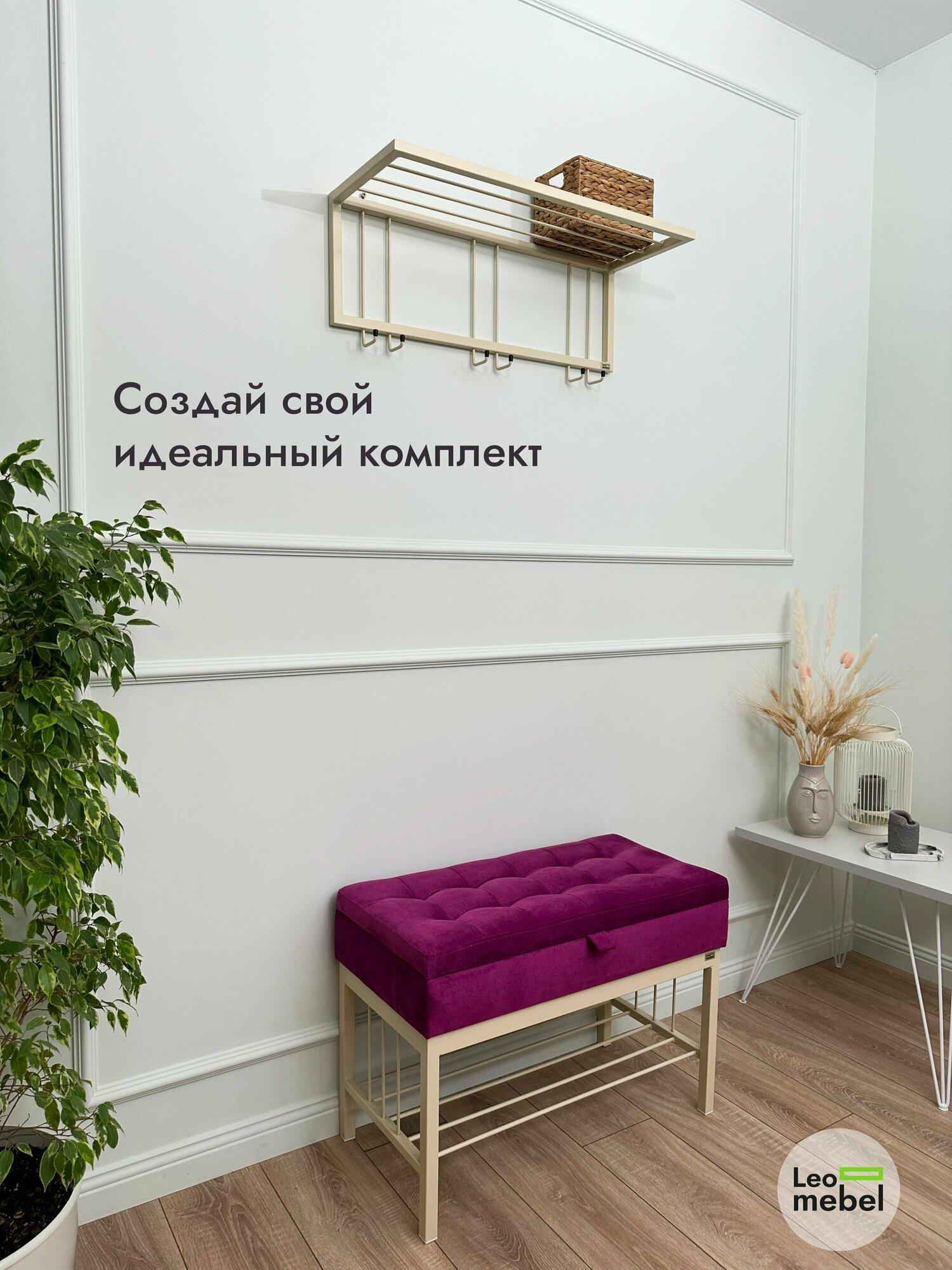 Банкетка в прихожую Леомебель обувница с сиденьем 76х53х39 Золотистый-фиолетовый