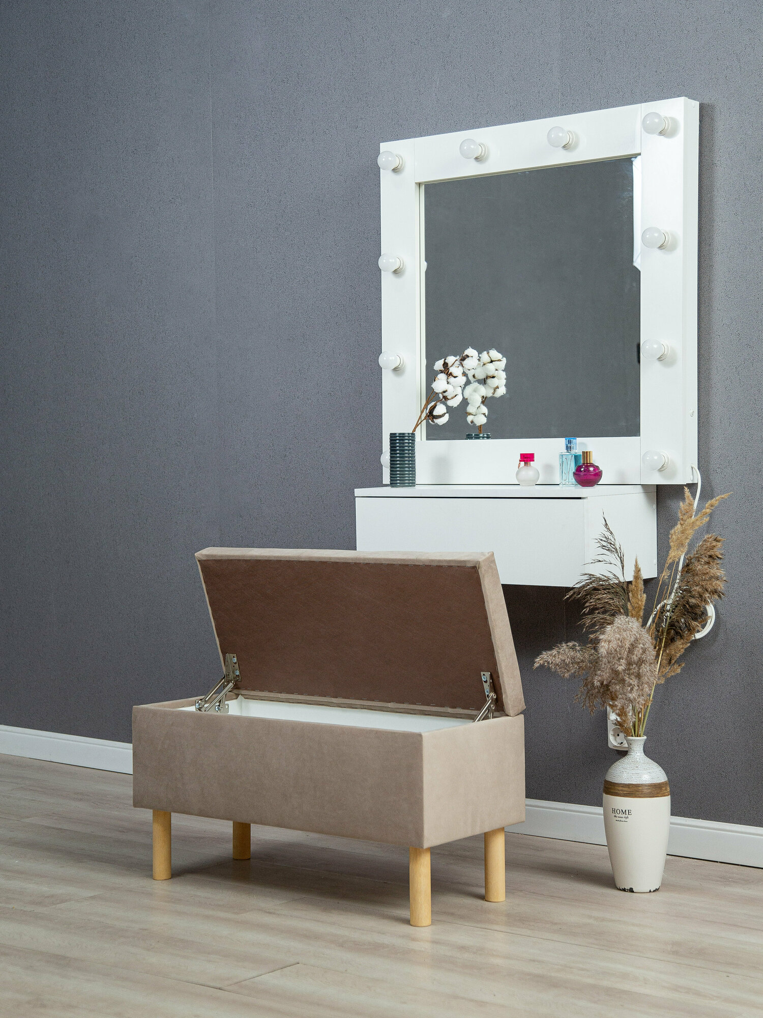 Royal Mebel / BELLO пуфик / пуф с ящиком в прихожую / для гостиной / для детской / в спальню / пуфик на ножках с открывающейся крышкой / банкетка