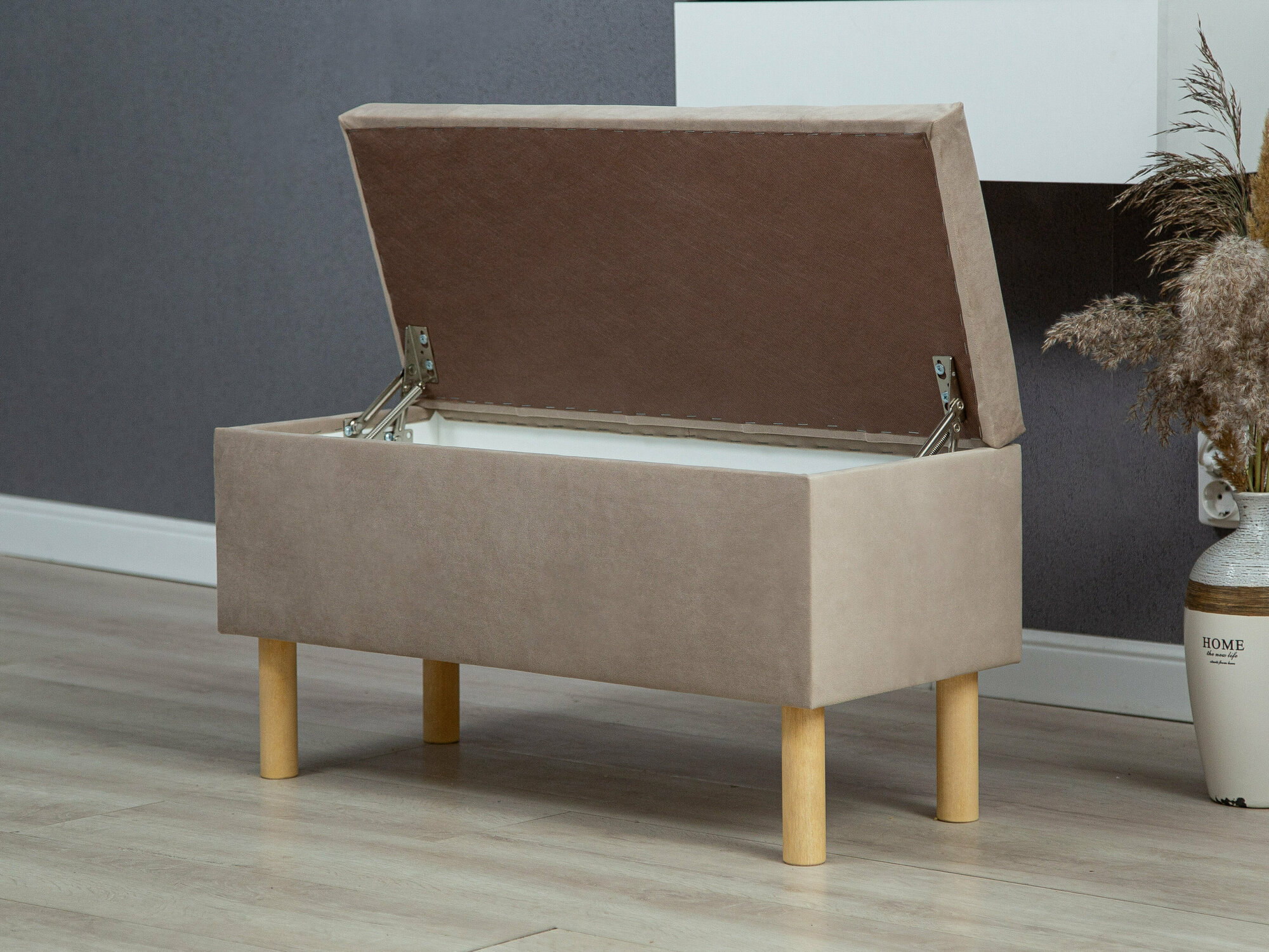 Пуфик с ящиком для хранения с открывающейся крышкой / банкетка тауп
