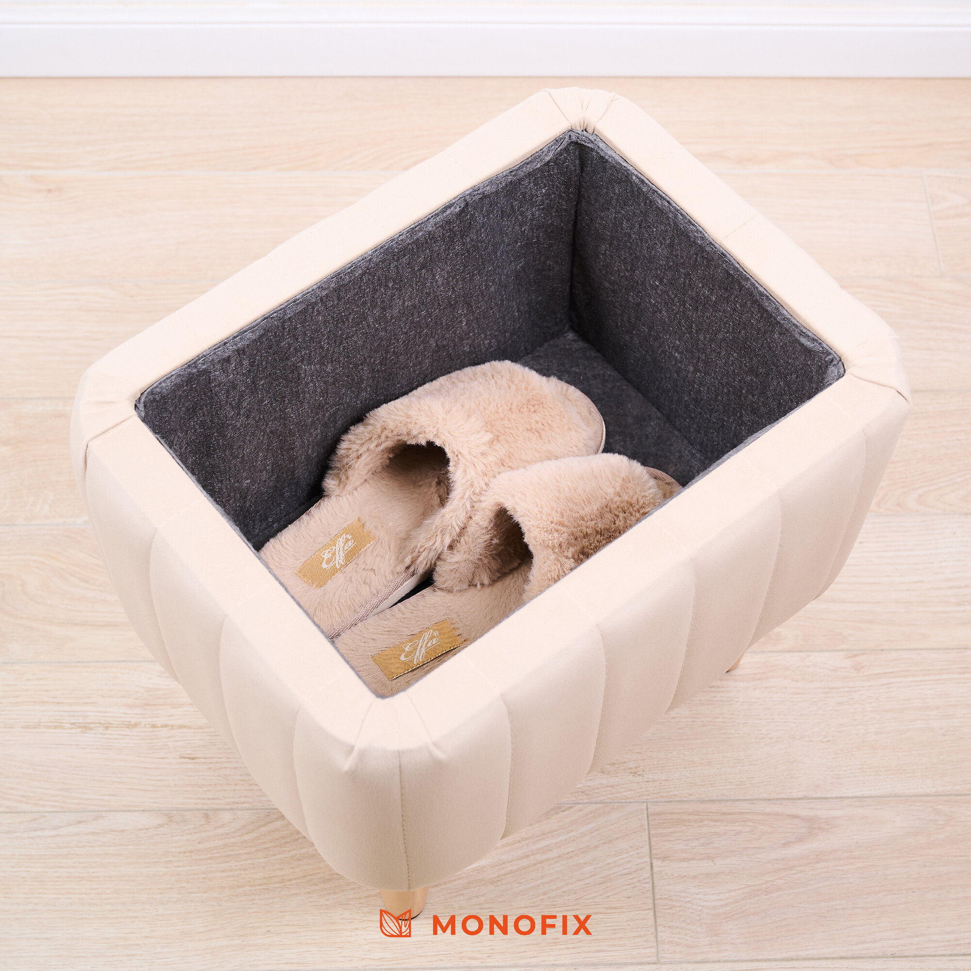 Обувница для прихожей с сиденьем закрытая / Пуф мягкий из экокожи / Банкетка в прихожую Бежевый 59.5*38.5*38