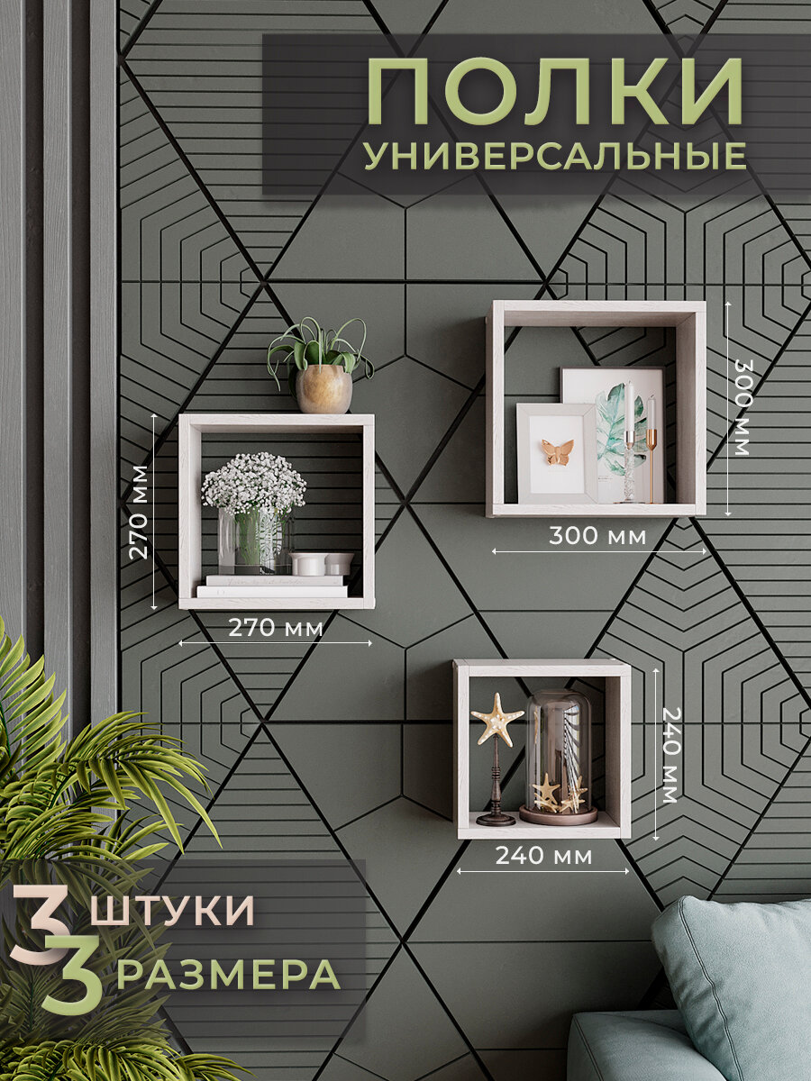Книжная полка Философия Уюта дуб сонома, 24х24, 27х27, 30х30 см.