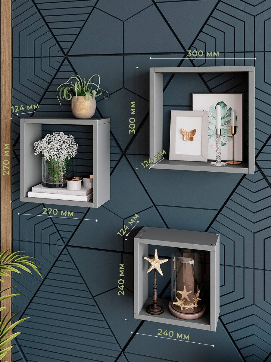 Набор полок настенных квадраты 3 шт