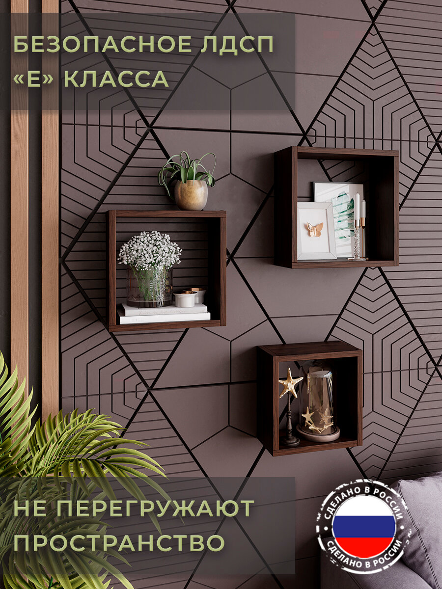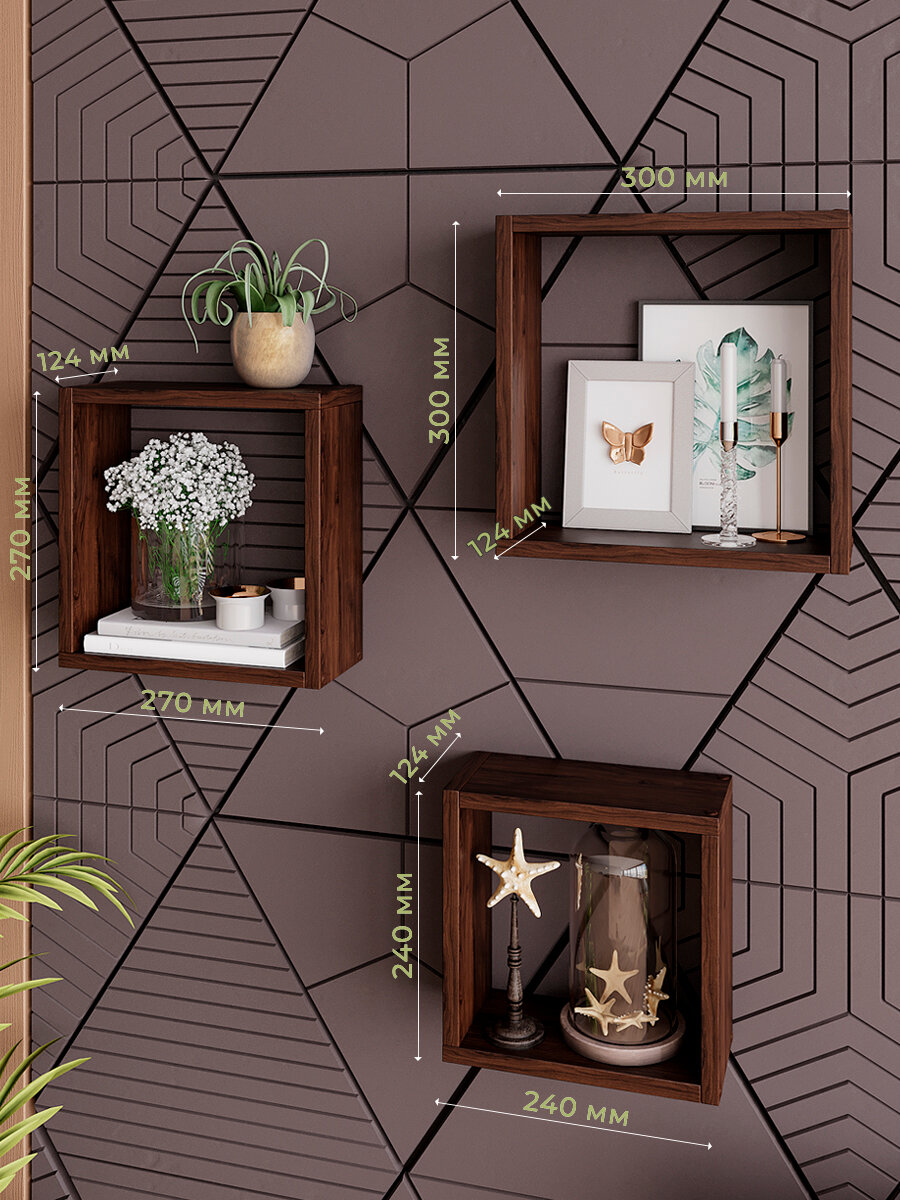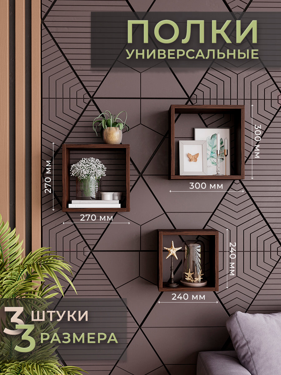 Настенные полки венге 3 шт. в прихожую и мебель для дома 24х24 см. 27х27 см. 30х30 см.