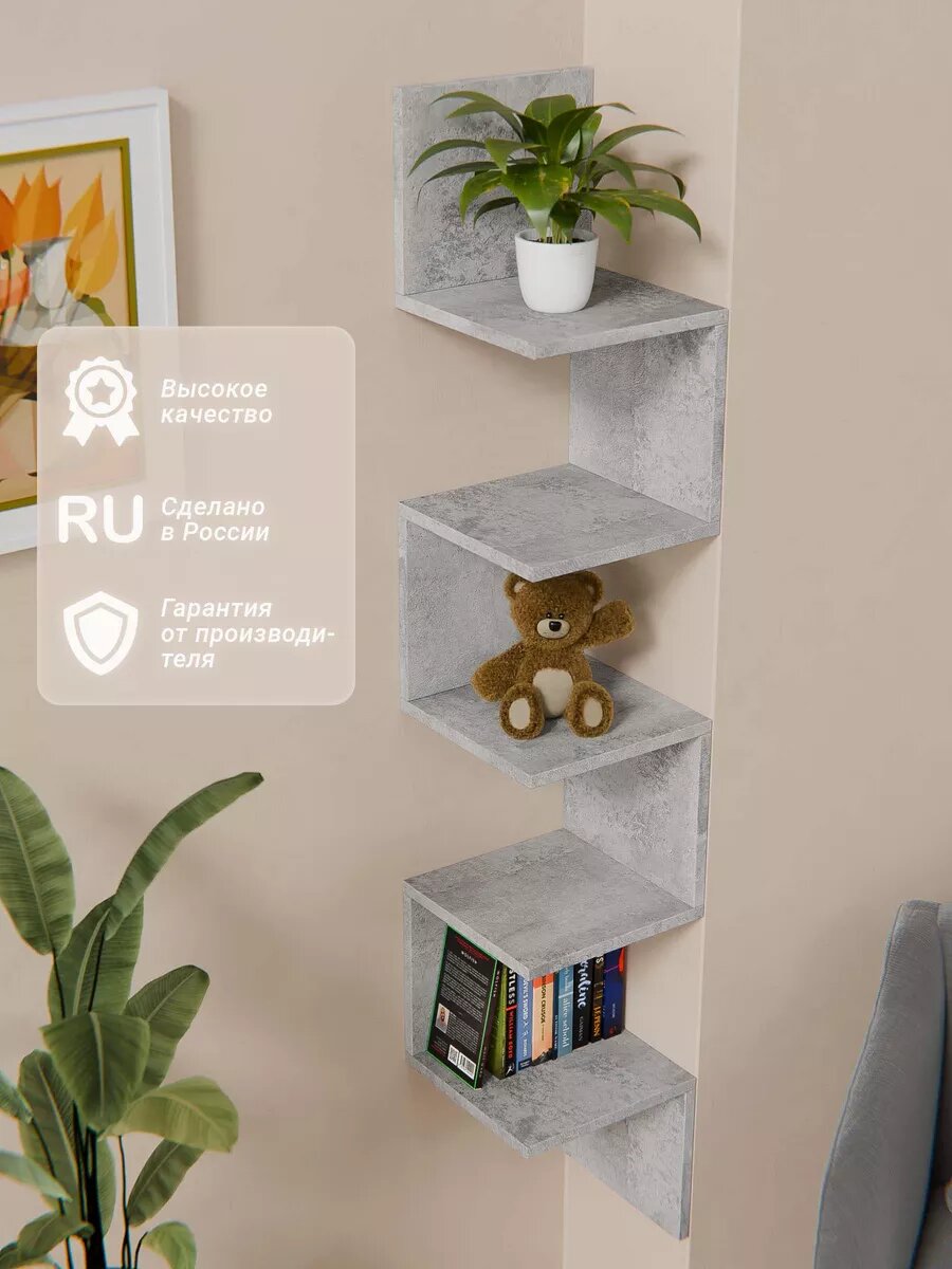 Купить Угловая настенная полка для книг и цветов MebelArt Серый мрамор