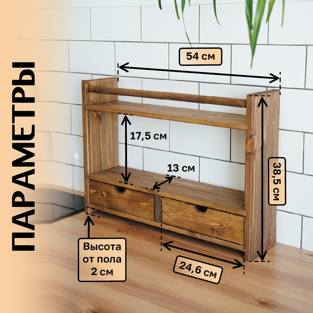 Настольная полка из натурального дерева с 2 ящиками, 54*38,5*13 см