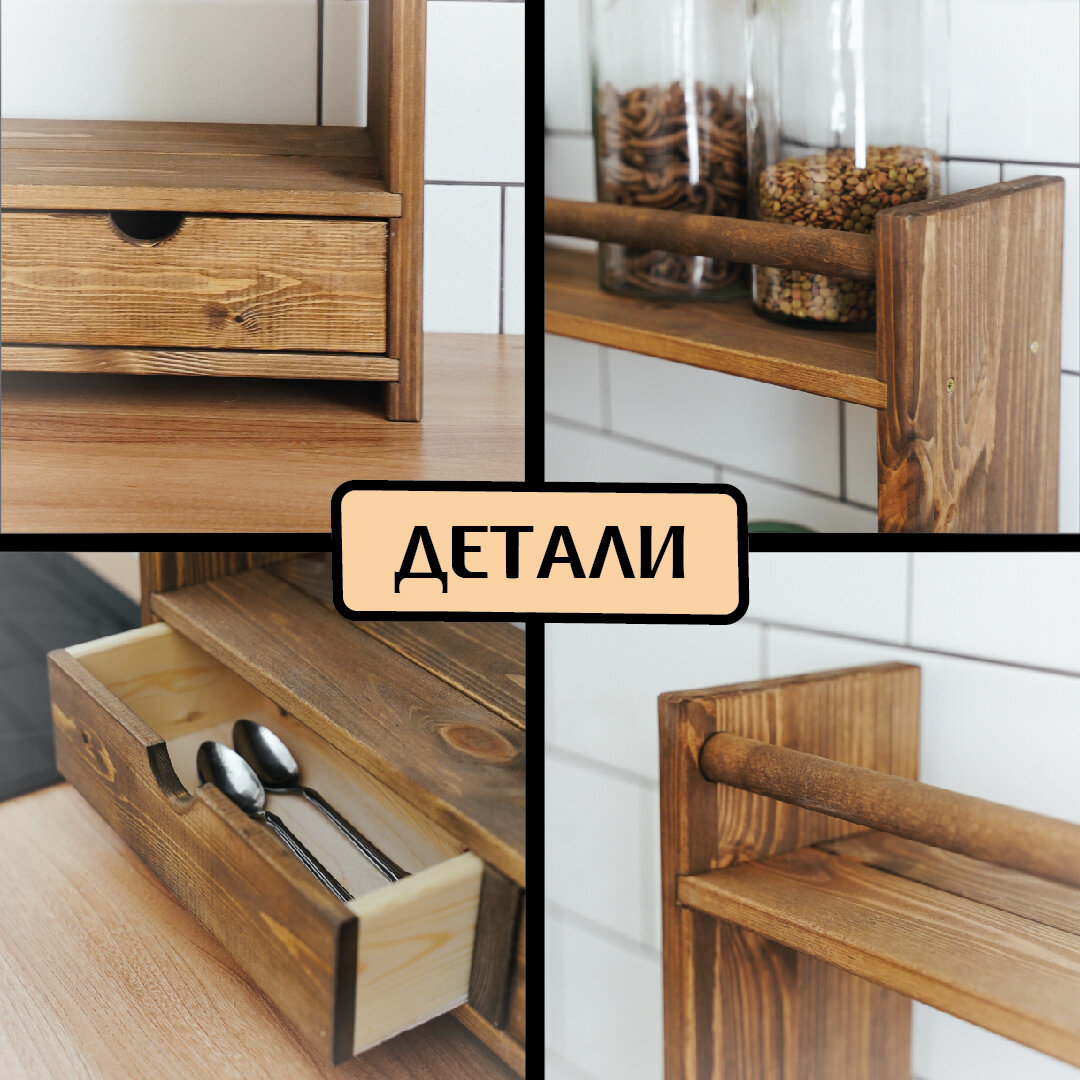 Настольная полка из лдсп с ящиком из натурального дерева, 39*38,5*13 см