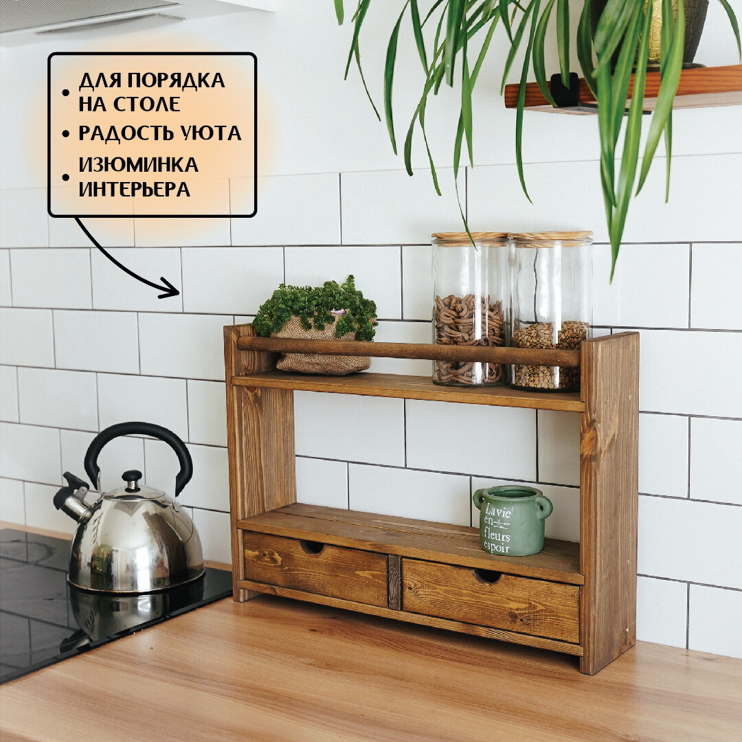 Настольная деревянная полка с 2 ящиками