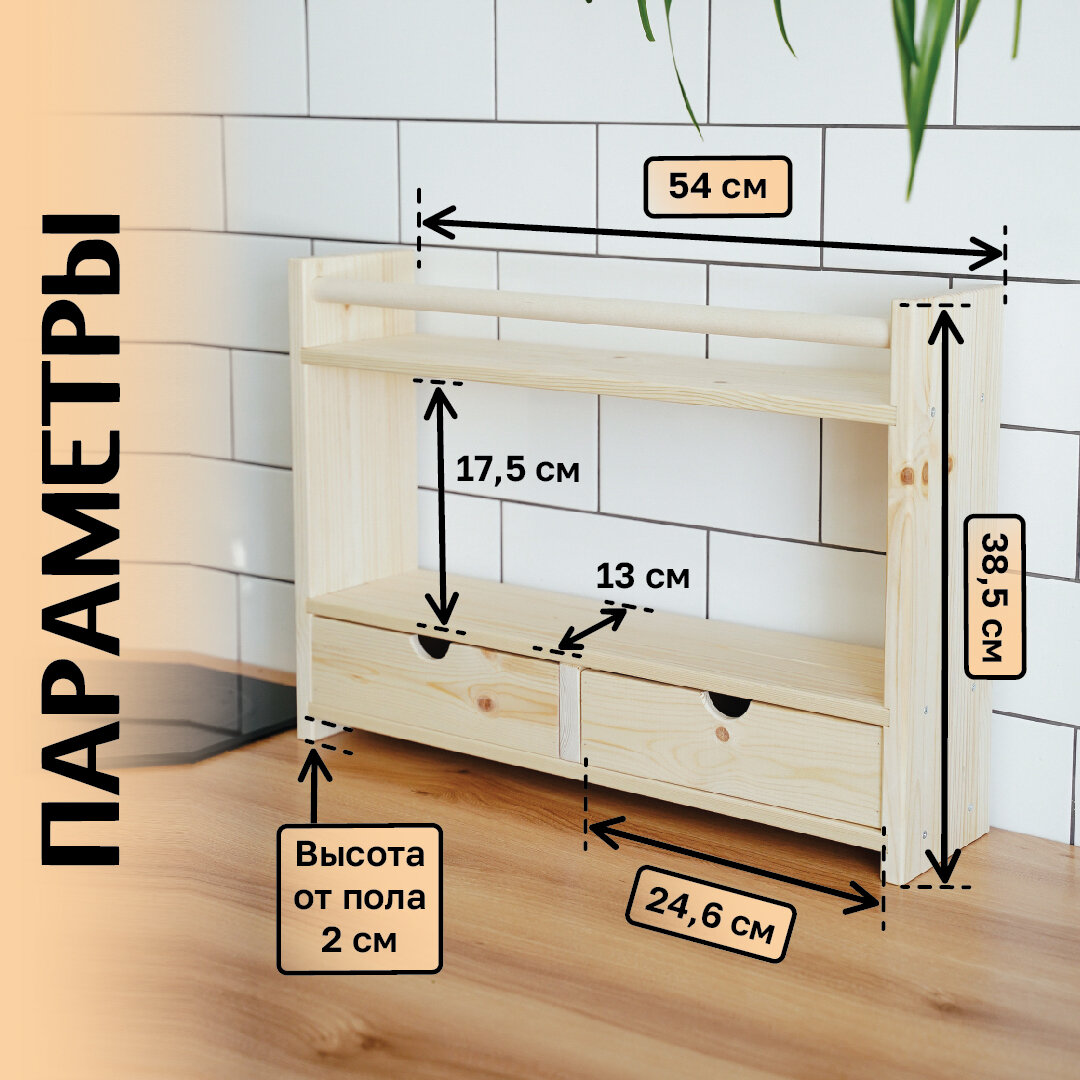 Настольная полка из натурального дерева с 2 ящиками, 54*38,5*13 см