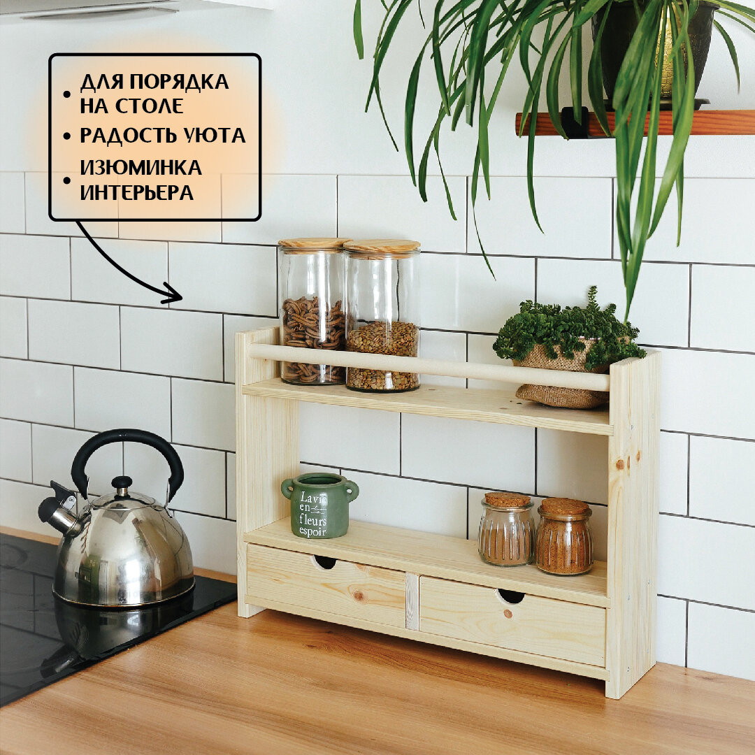 Настольная деревянная полка с 2 ящиками