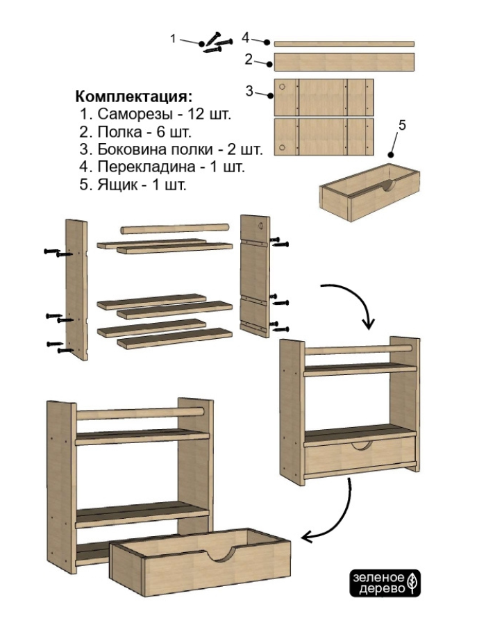 СохранитьНастольная полка с 1 ящиком из натурального дерева в цвете орех интересное: