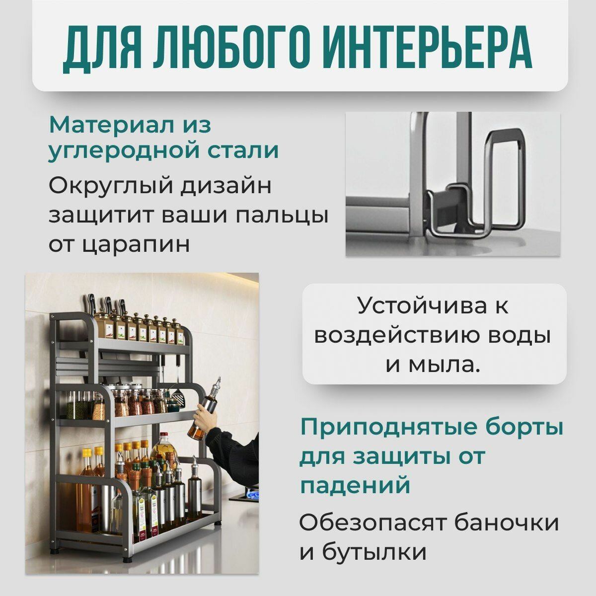 Полка для кухни, Стеллаж для специй, черный, 57х40х23 см интересное: