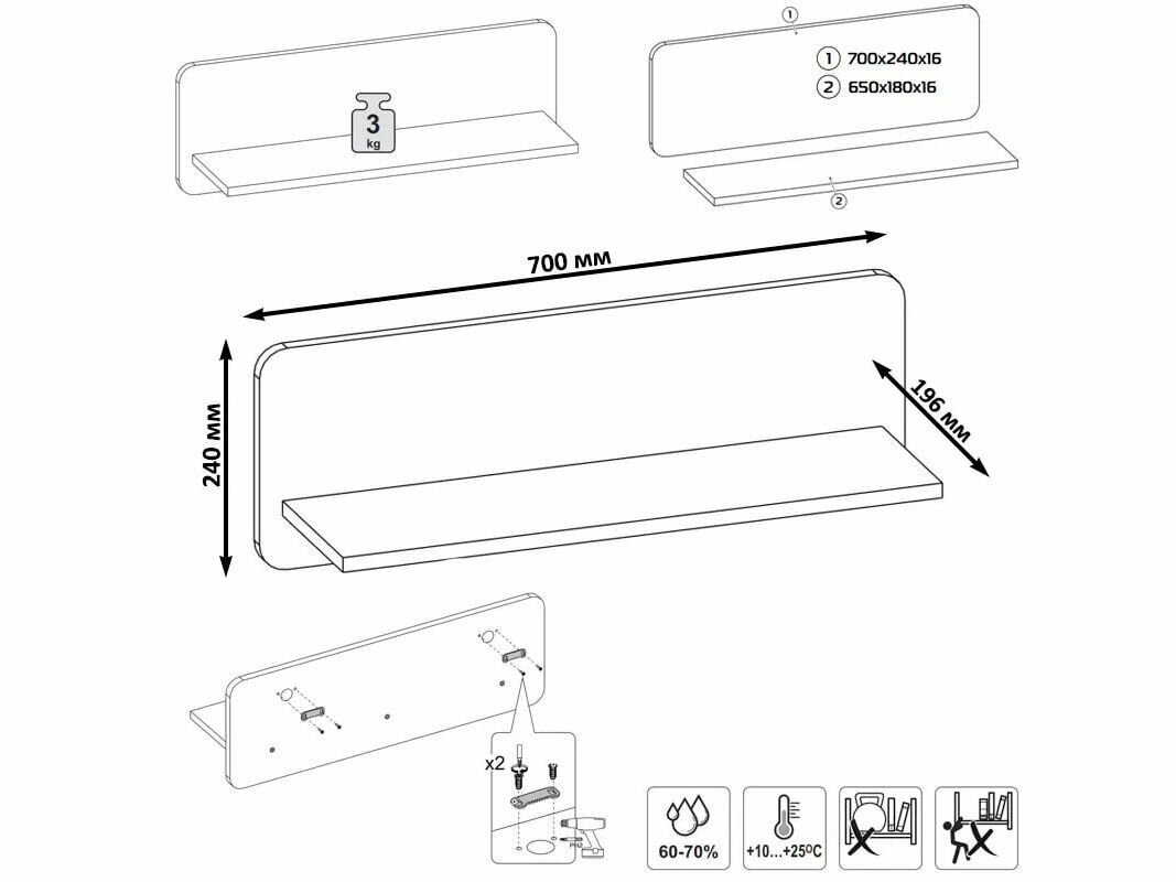 Полка Моби Вуди 15.46 белый премиум / дуб крафт золотой 70x19.6x24 см интересное: