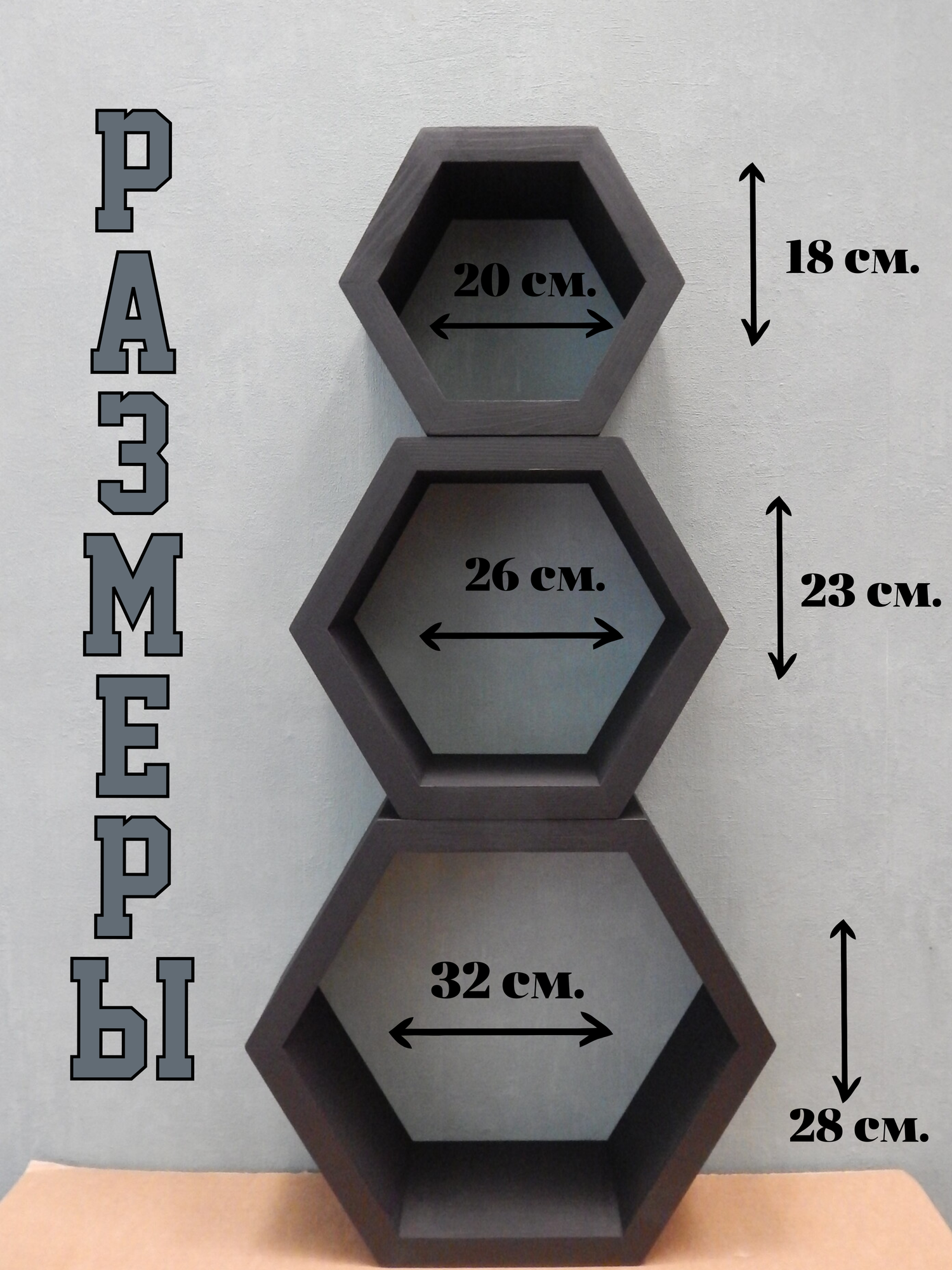 Купить Комплект полок соты, чёрные, 3 шт.