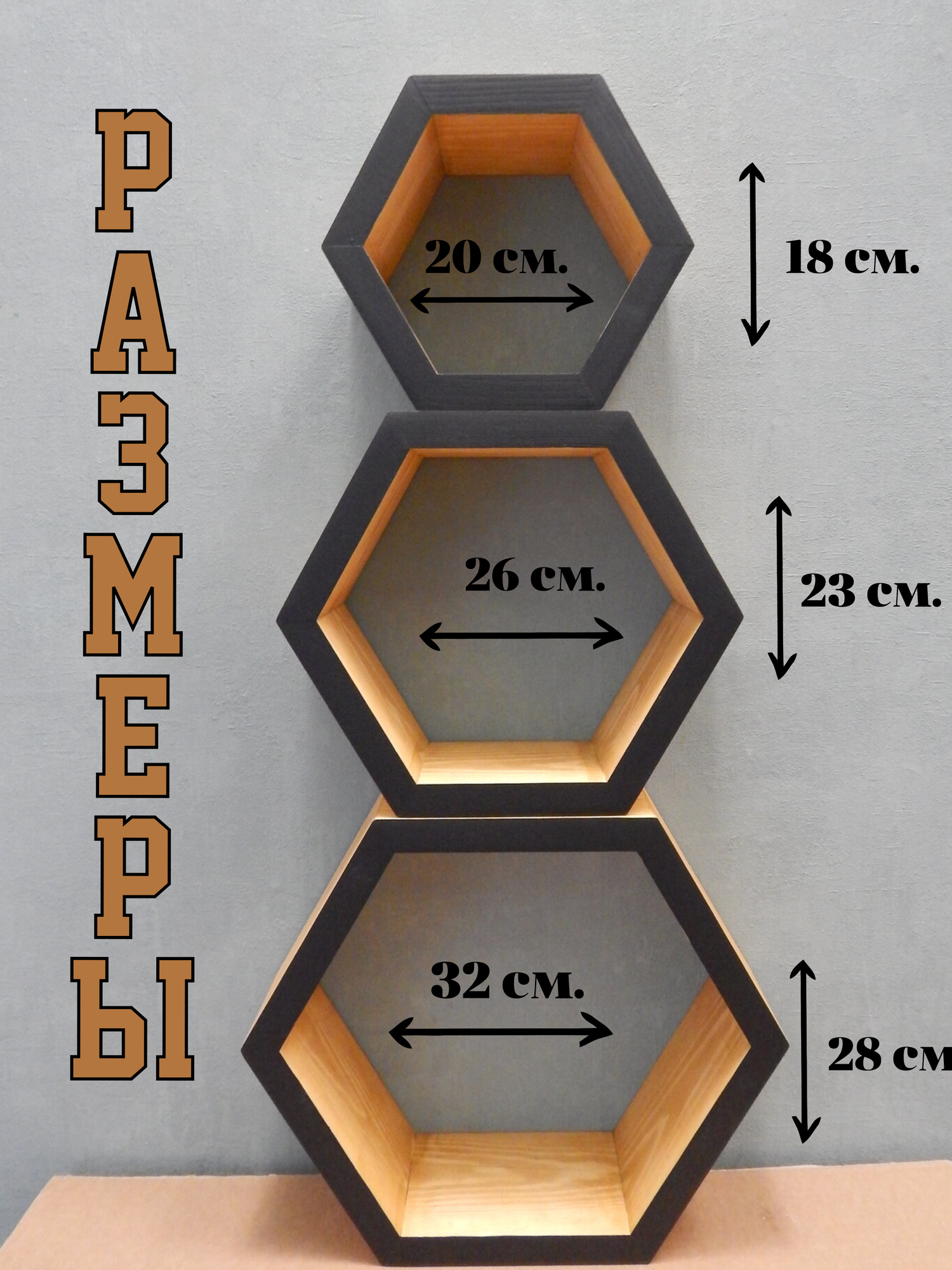 Комплект полок соты, дуб с чёрным, 3шт. интересное: