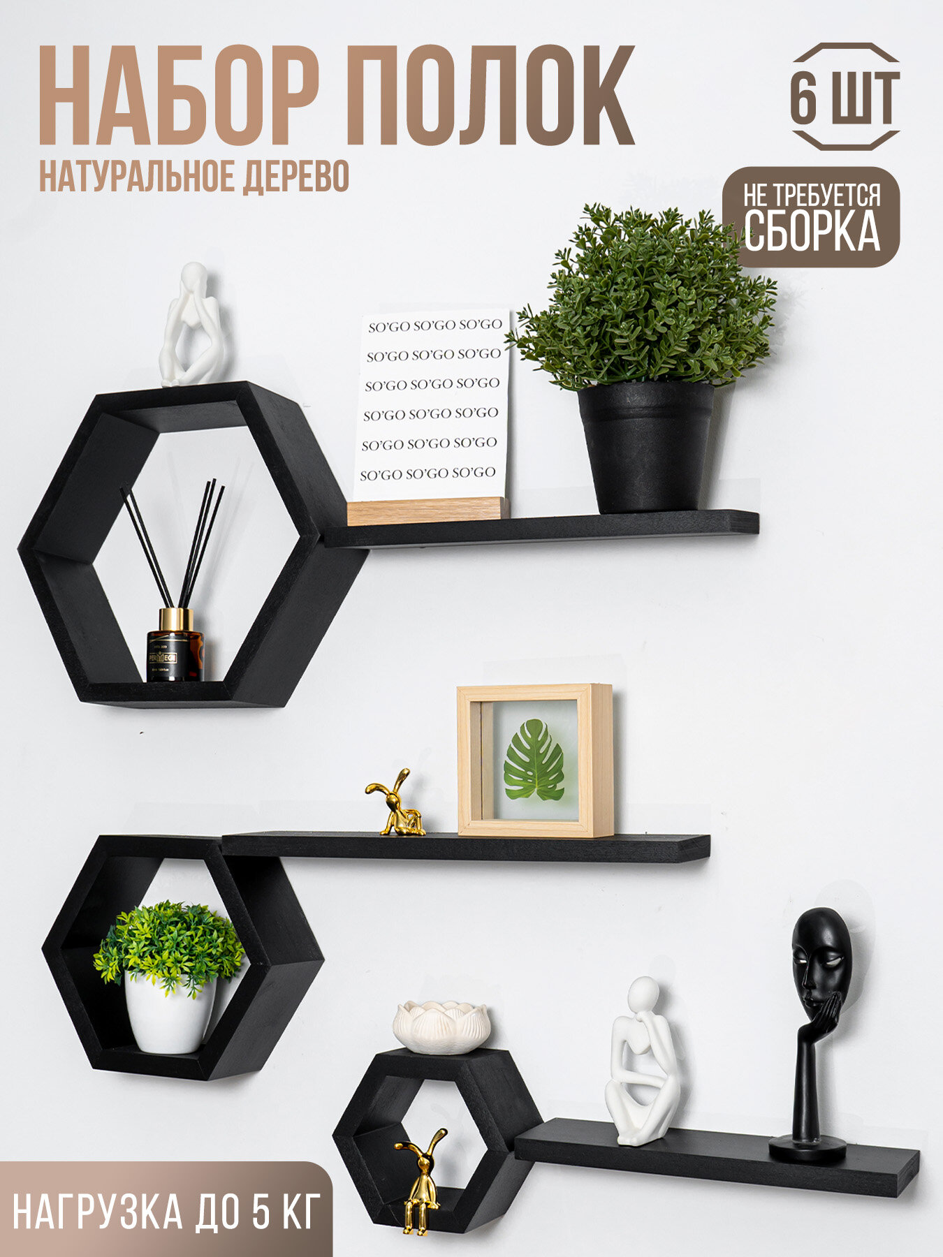 Полки декоративные соты на стену без покраски